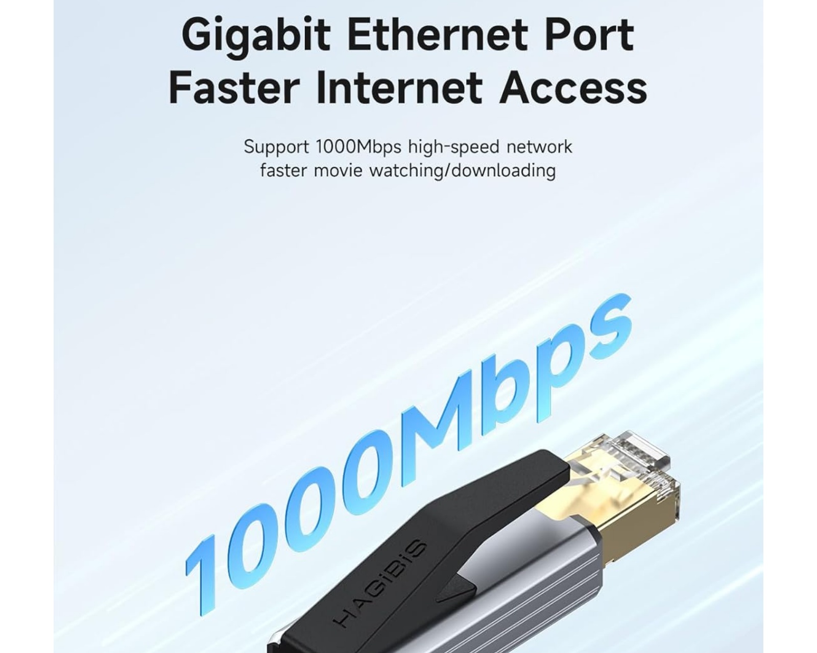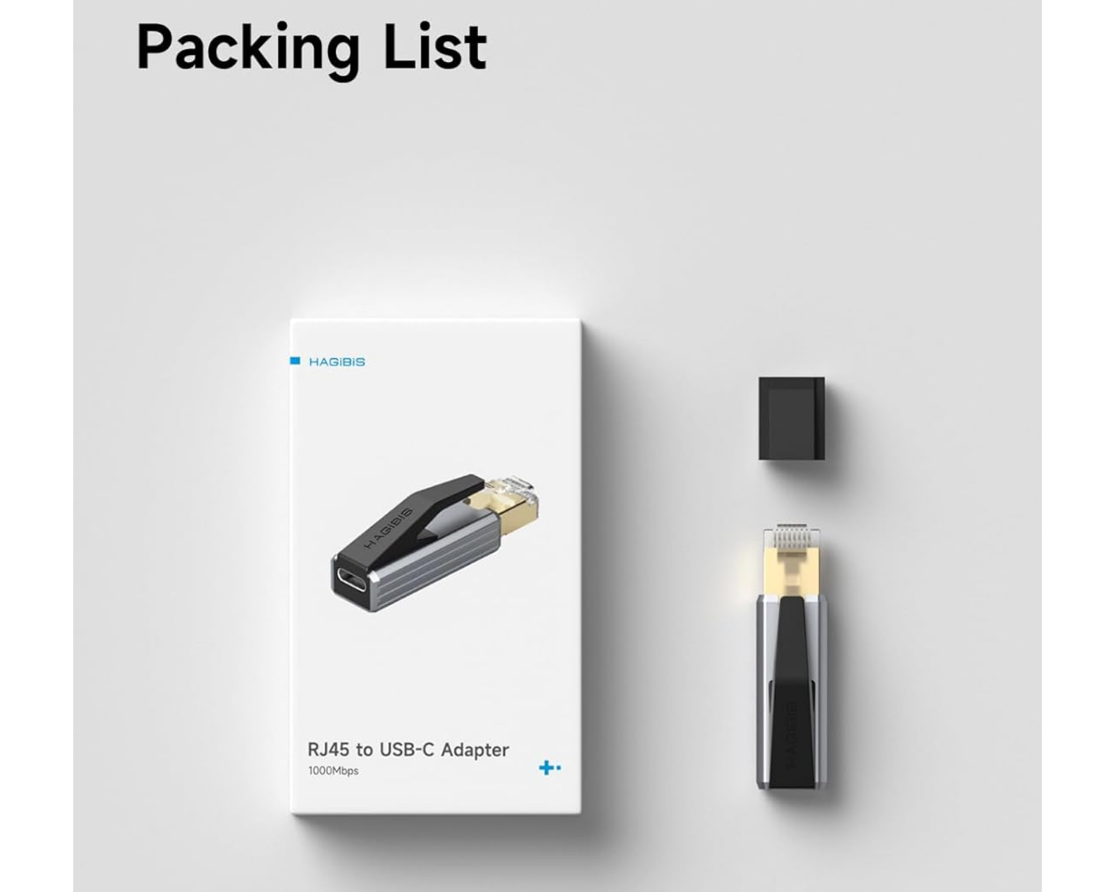 USB C:stä RJ45-adapteri on Hagibisin tuote, joka mahdollistaa USB-C-laitteiden liittämisen verkkoon RJ45-portin kautta. Adaptern suunnittelu, jossa on RJ45-uros ja USB-C-naaras, mahdollistaa USB-C C- tai A-C-kaapelien helpon käytön internet-yhteyksiä varten. Se tukee jopa 1000 Mbps nopeuksia ja on yhteensopiva monenlaisten laitteiden kanssa.Adapterin rakennelaatu on tunnusomaista kompaktin muotoilun vuoksi, jonka mitat ovat 2,1 x 0,7 x 0,6 tuumaa ja painaa noin 0,9 oz. Se on varustettu Realtek RTL8153E -sirulla, mikä lisää korkeaa vakautta ja matalaa virrankulutusta. Adapteri on plug-and-play eikä vaadi ajureita useille käyttöjärjestelmille, mukaan lukien Windows ja macOS. Se on lisäksi yhteensopiva USB 4.0, 3.2, 3.1 ja 3.0 sekä Thunderbolt 3 ja 4 kanssa, mikä tekee siitä monipuolisen käytettäväksi erilaisten laitteiden, kuten kannettavien tietokoneiden, älypuhelimien ja tablettien, kanssa.