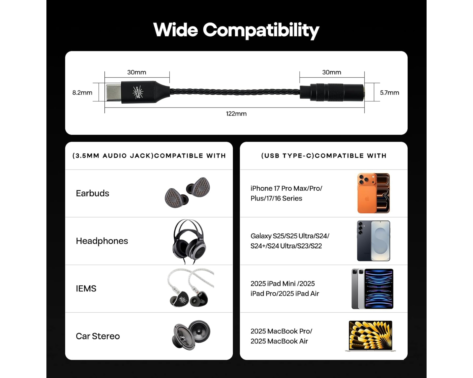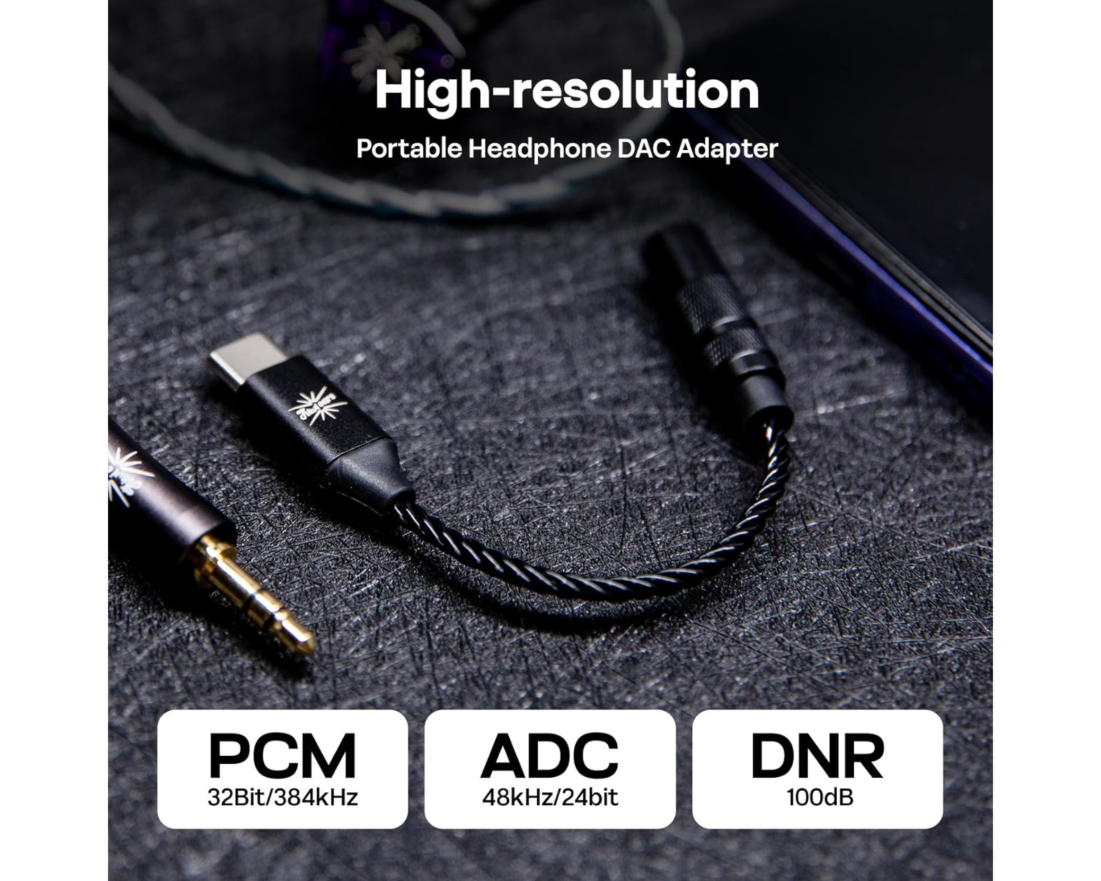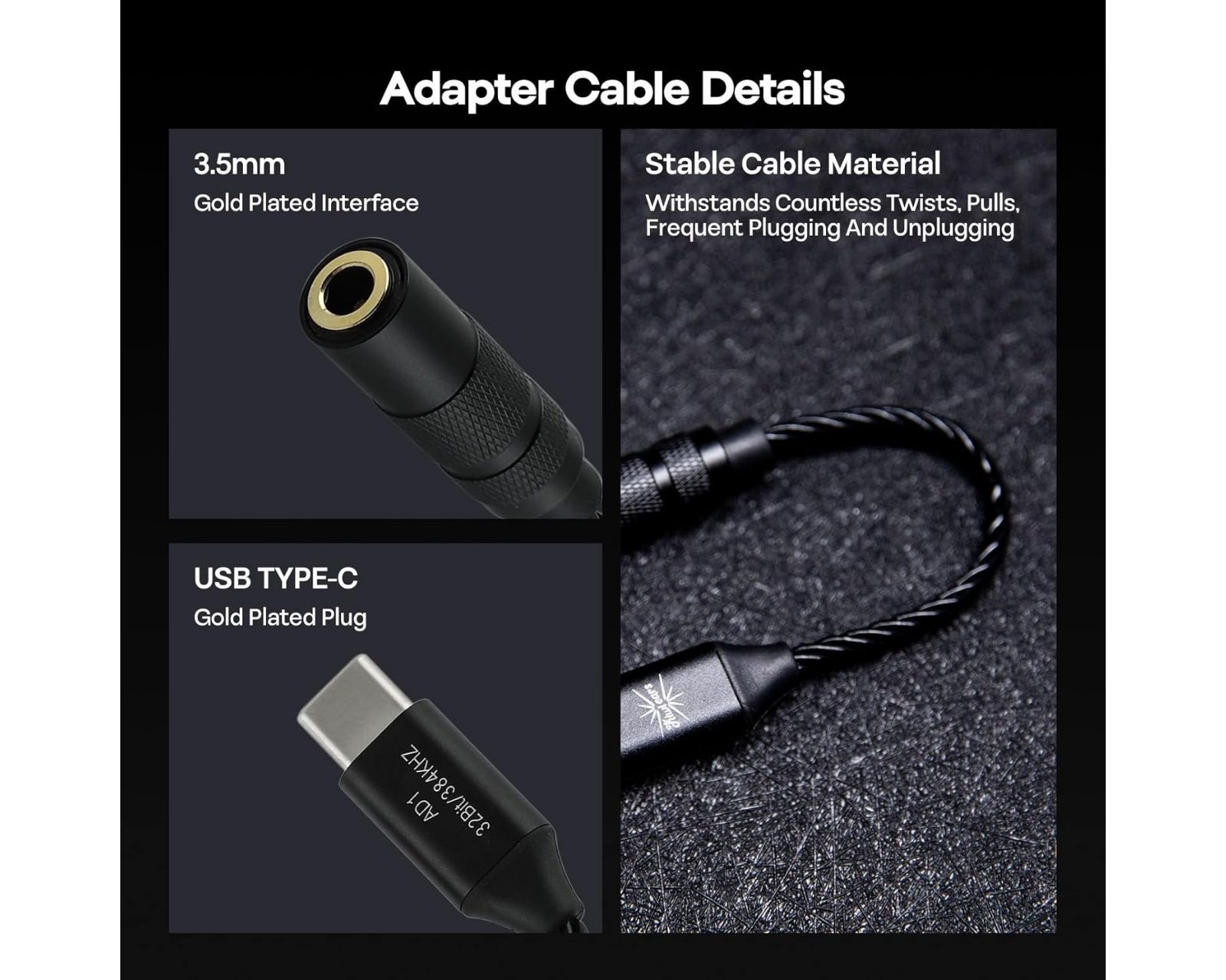 Linsoul Kiwi Ears AD1 on DAC-adapter, joka mahdollistaa yhteyden USB-C-laitteiden ja 3,5 mm liittimellä varustettujen kuulokkeiden välillä. Se tukee korkealaatuista äänimateriaalia jopa 32 bittiä/384 kHz ja käyttää KT02H20-sirua varmistaakseen vakaan äänen dekoodauksen. Tuote on tarkoitettu käytettäväksi kuulokkeiden, kannettavien tietokoneiden ja älypuhelimien kanssa.Adapterikaapeli on suunniteltu korkealla kestävyydellä ja valmistettu kestävistä materiaaleista salliakseen toistuvat liitännät ja irrotukset. Metallipinnoitetut liittimet varmistavat häviöttömän äänen siirron, kun taas CTIA-standardointi takaa yhteensopivuuden useimpien nykyaikaisten mikrofonien kanssa. Laite tarjoaa kompaktin muotoilun, joka tekee siitä helpon kuljettaa, mikä on hyödyllistä sekä mobiilikäytössä että studioissa.