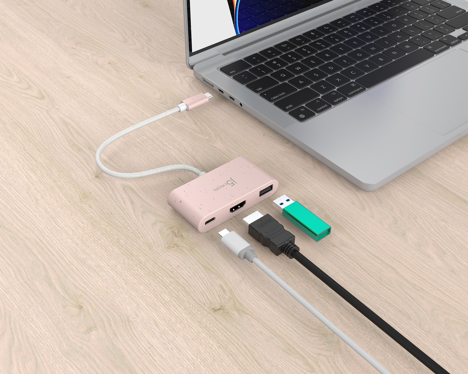j5createn JCA379ER on monipuolinen ympäristöystävällinen USB-C-HDMI & USB Type-A virtalähdesovittimella. Tämä laite tuo lisätoimintoja kannettavaan tietokoneeseen tarjoamalla ylimääräisen A-tyypin USB-portin, HDMI-näyttötuen ja USB-C-portin, joka mahdollistaa lataamisen USB-C-portin kautta. Koe nopea tiedonsiirtonopeus jopa 5 Gbps USB Type-A SuperSpeed-portin avulla. HDMI-portti parantaa katselukokemustasi jopa 4K-tarkkuudella. USB-C Power Delivery 3.0 -latausportin ansiosta se tarjoaa jopa 100 W:n tehokkaan latauksen, kun se liitetään USB-C-virtalähteeseen.- Ympäristöystävällinen, valmistettu kierrätysmateriaalista