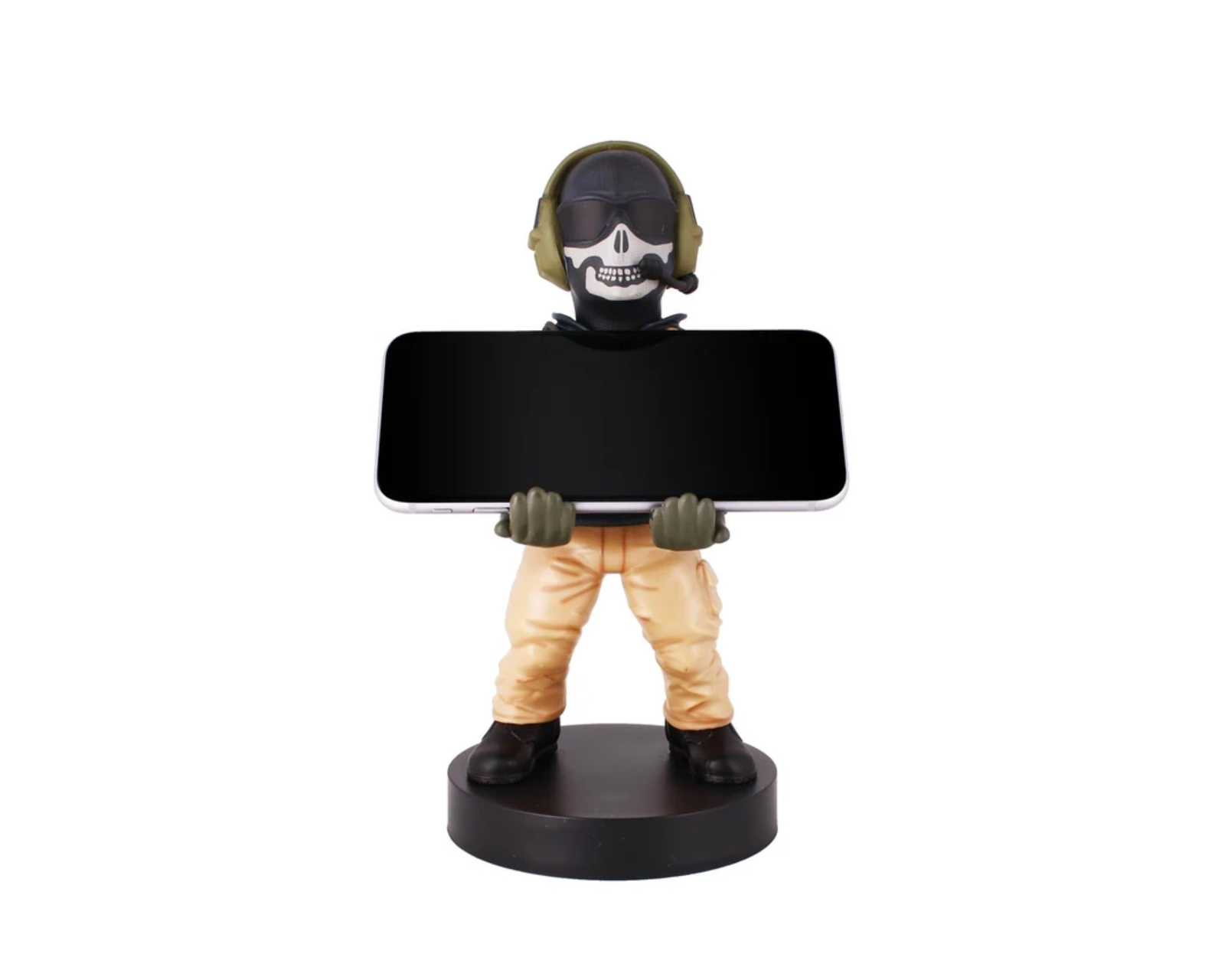 Call of Duty Lt. Simon Ghost Riley on Cable Guysin valmistama kännykkä- ja ohjainpidike. Tuote tukee useimpia älypuhelimia sekä pelikonsoliohjaimia, kuten PlayStation 5 DualSense ja Xbox Series S/X. Se on suunniteltu pelaajille ja Call of Duty -harrastajille, jotka haluavat käytännöllisen ratkaisun laitteidensa säilyttämiseen. Pidikkeen korkeus on noin 21 cm ja se on Activisionin virallisesti lisensoima.Teline on valmistettu tukevasta muovista ja siinä on tyylikäs muotoilu, joka on saanut inspiraationsa Simon "Ghost" Riley -hahmosta. Siinä on vakaa pohja, joka varmistaa laitteen tukevan seisomisen, ja kädessä pidettävää muotoilua varten siinä on kaksi aukkoa laitteiden kätevää sijoittamista varten. Mukautuksen ansiosta erilaisia laitteita, älypuhelimista kädessä pidettäviin ohjaimiin, voidaan helposti asettaa käteen. Tuote kuuluu Cable Guy -mallistoon, joka takaa korkealaatuisen muotoilun ja huolellisesti harkitut yksityiskohdat sopimaan pelitelineisiin.