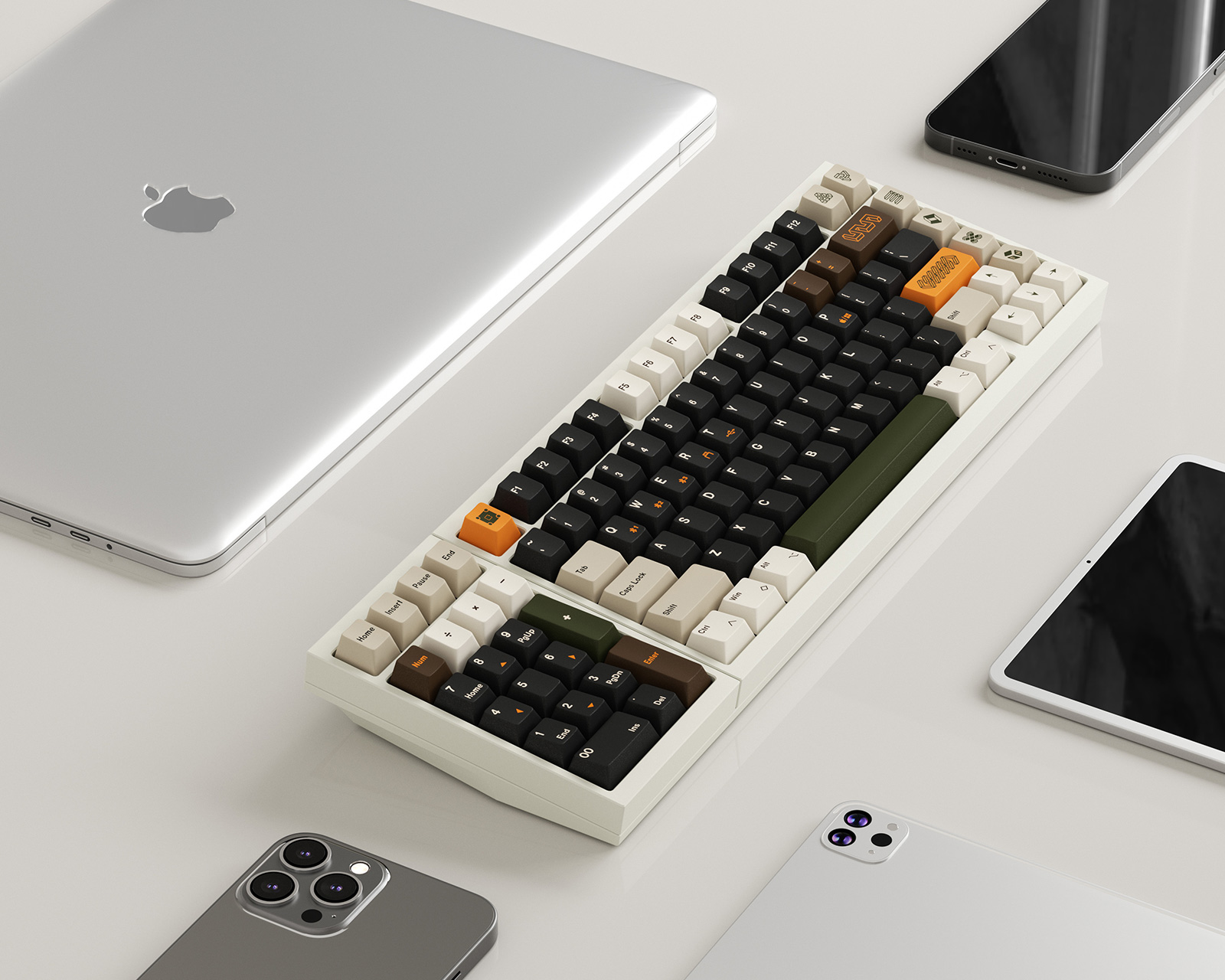 LK98 on ensiluokkainen näppäimistö, langaton, monikäyttöinen sekä ANSI- että ISO-yhteensopiva modulaarisella numeronäppäimistöllä. 75-prosenttisen perusasettelun ansiosta voit helposti valita, kummalle puolelle haluat numeronäppäimistön, tai haluatko poistaa sen kokonaan raskaan pelisession aikana.