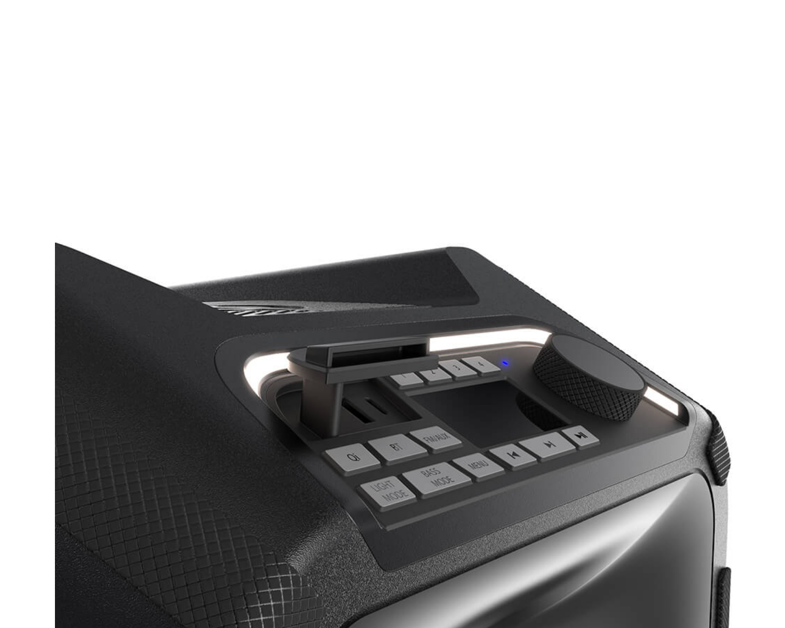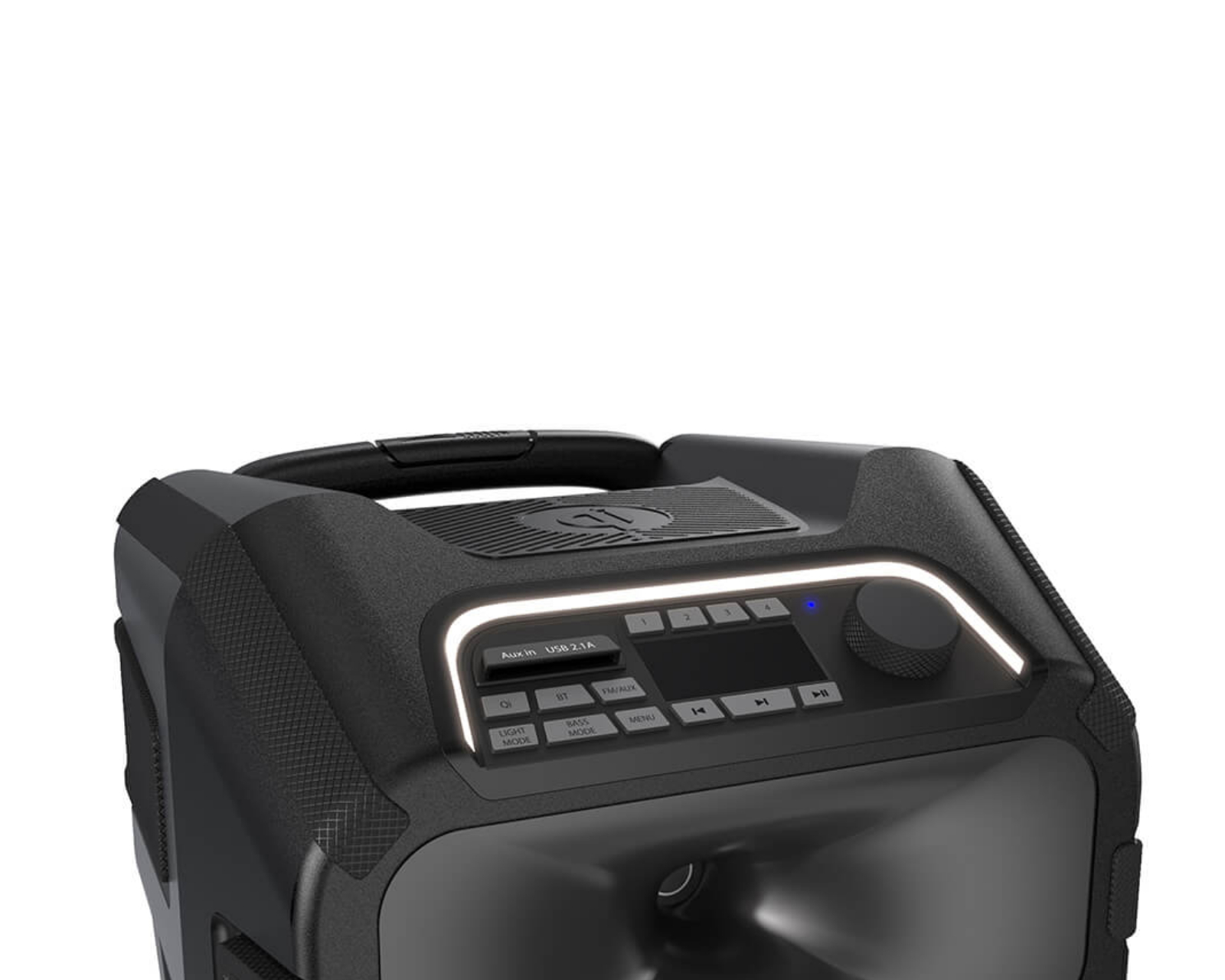 IMT9000 SonicBoom120 -kaiutin on Altec Lansingin Bluetooth-kaiutin, joka tarjoaa langattomia äänenelämyksiä jopa 12 tunnin akunkestolla. Se on suunniteltu sekä sisä- että ulkokäyttöön ja antaa käyttäjälle mahdollisuuden liittää laitteet helposti Bluetoothin tai AUX-kaapelin avulla. Tuote on saatavilla mustana ja se on ihanteellinen niille, jotka etsivät kannettavaa kaiutinta, jossa on voimakas äänenlaatu.Kaiuttimessa on kestävä rakenne, joka takaa kestävyys ja luotettavuus, mikä tekee siitä sopivan aktiivisille käyttäjille. Se käyttää Bluetooth-tekniikkaa langattomaan liitäntään ja tukee myös AUX-liitäntöjä moniin käyttövaihtoehtoihin. Laite on kevyt, joten sitä on helppo kuljettaa ja se sopii erilaisiin ympäristöihin. Sen muotoilu on funktionaalinen, mikä mahdollistaa helpon pääsyn ohjaimiin. IMT9000 SonicBoom120:ssä on komponentteja, jotka optimoivat äänen suorituskykyä, tarjoten tasapainoisen ja kirkkaan äänenelämyksen.