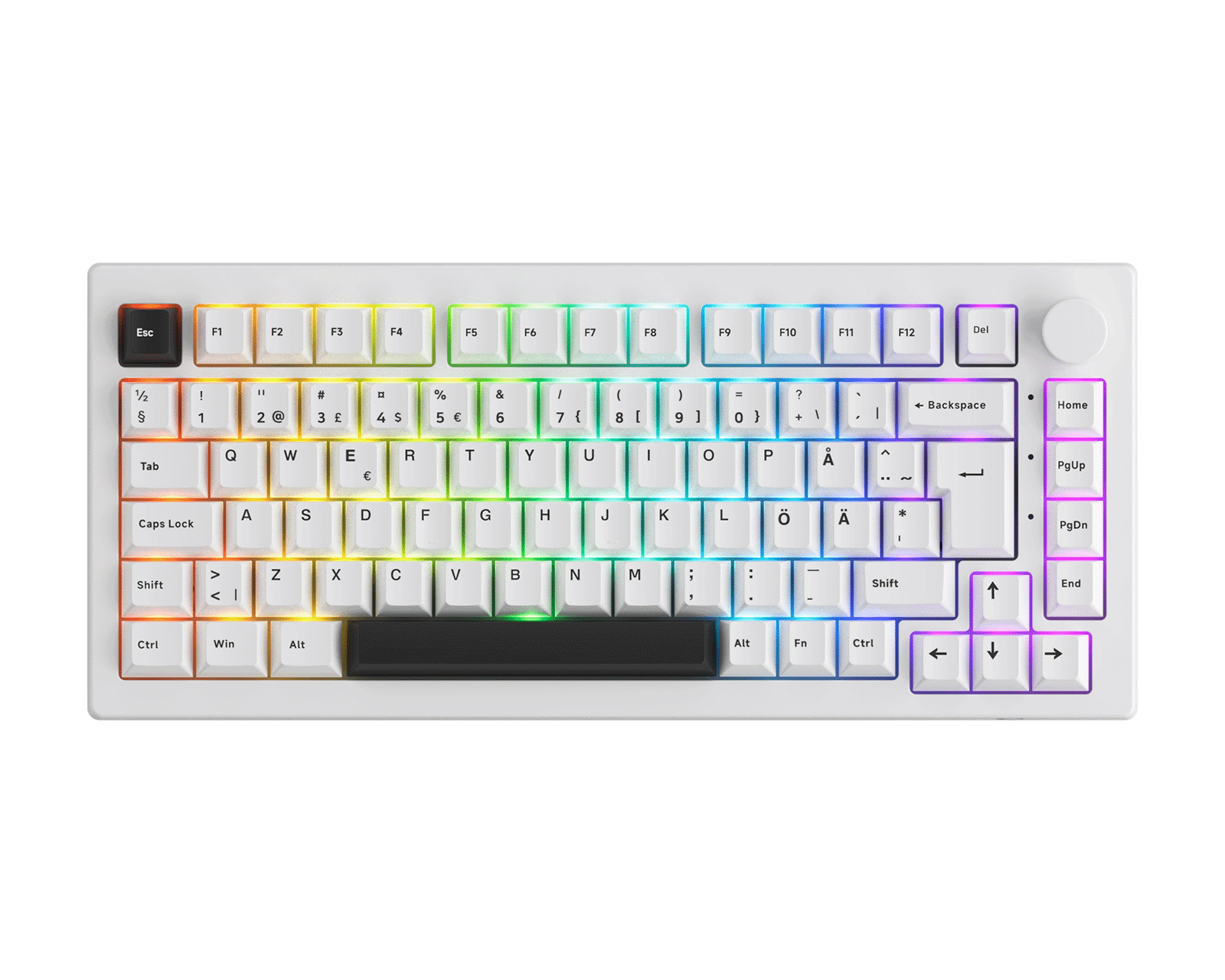 Hot swappable -toiminnallisuus ja sen innovatiivinen gasket mount tarjoavat pehmeän ja vaimennetun kirjoituskokemuksen. Sujuva kääntövipu mahdollistaa nopean säätämisen valolle ja äänenvoimakkuudelle, mikä optimoi työskentelyä. Sen PBT double shot -näppäimet varmistavat kestävän laadun ja estetiikan.