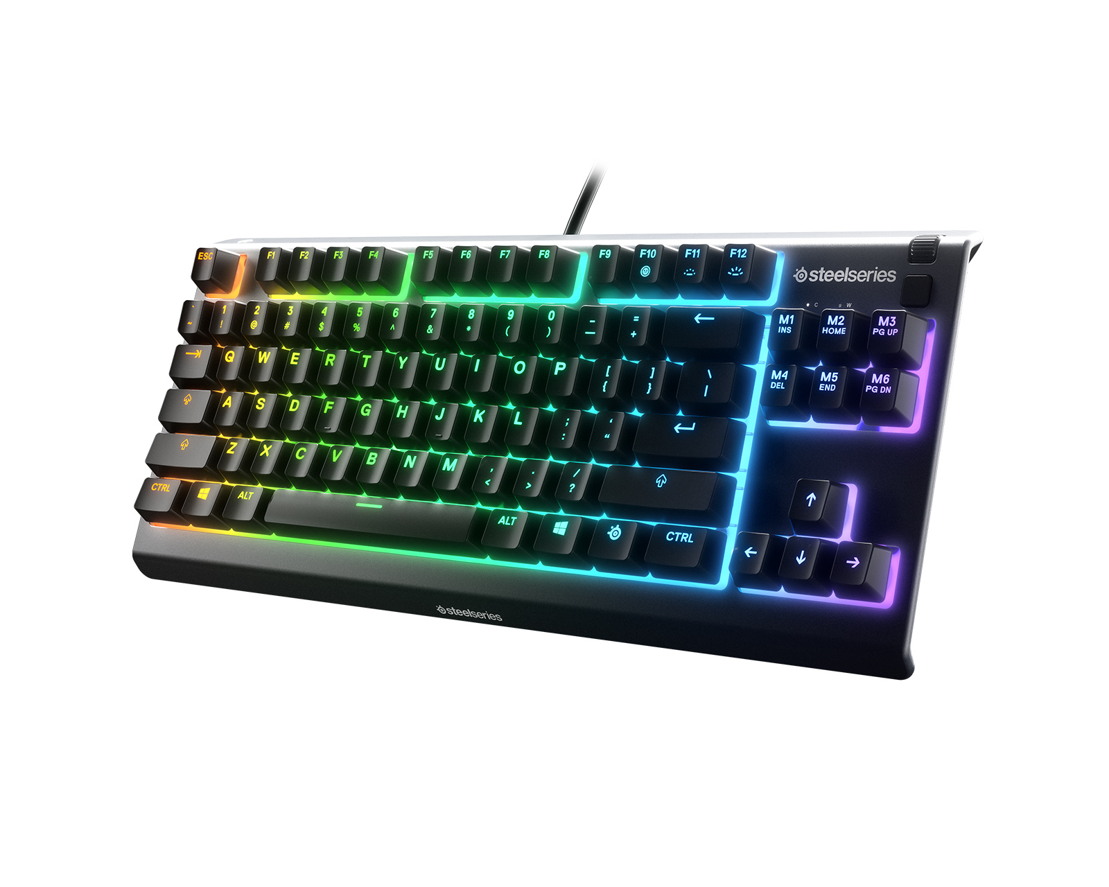 DEMO: Återköp och testexemplar. Bra skick.Apex 3 TKL -pelinäppäimistö on ihka ensimmäinen vettä hylkivä esports-tason TKL-näppäimistö. Siinä on vakavasti otettavan pelinäppäimistön premium-ominaisuuksia, kuten kompakti ja tyylikäs “tenkeyless”-muotoilu ja hipihiljaiset pelikytkimet, jotka tarjoavat vähäkitkaista suorituskykyä yli 20 miljoonaan painallukseen, sekä pelitasoinen anti-ghosting-teknologia, jonka avulla yksikään näppäimenpainallus ei valu hukkaan, ja myös upea PrismSync RGB -valaistus. Apex 3 TKL -näppäimistö on suunniteltu päivittäiseen käyttöön, ja sen ominaisuudet ovat valittu pelaajien toivomusten mukaisesti: siinä on erilliset multimediaohjaimet ja kolmisuuntainen kaapelireititys, sekä IP32-vesi- ja pölysuojaus, joka varjelee näppäimistöä läikyttelyltä ja muilta havereilta.