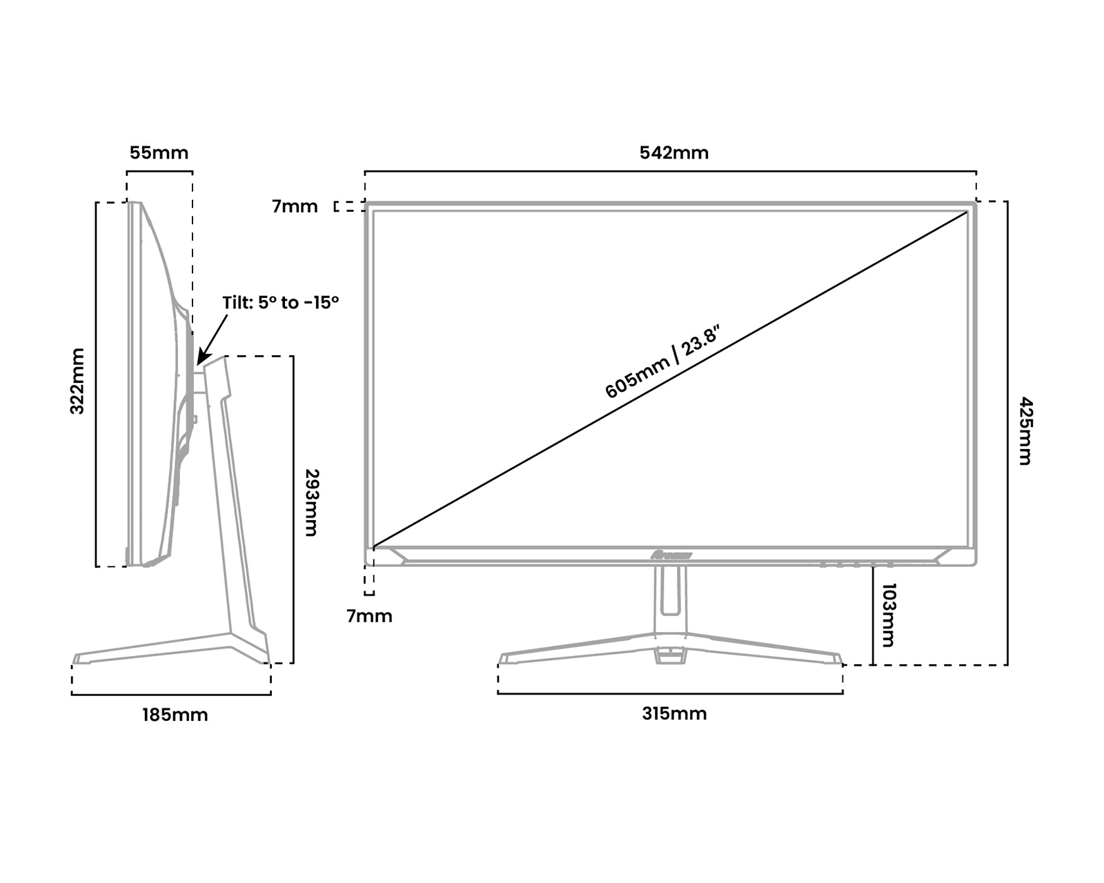 Näytössä on kirkkaus 300 cd/m² ja kontrastisuhde 1000:1. Se on varustettu HDMI v2.0:lla ja DisplayPort v1.4:llä liittämistä varten ja sisältää sisäänrakennetut kaiuttimet. VESA-kiinnitys 100x100 ja 75x75 mahdollistavat joustavan asennuksen. Se on myös kalteva, jotta näyttökulmaa voi helposti säätää. Häivyttämättömän kuvan ja HDR-teknologian ansiosta käyttökokemus paranee pitkän aikavälin käytössä.