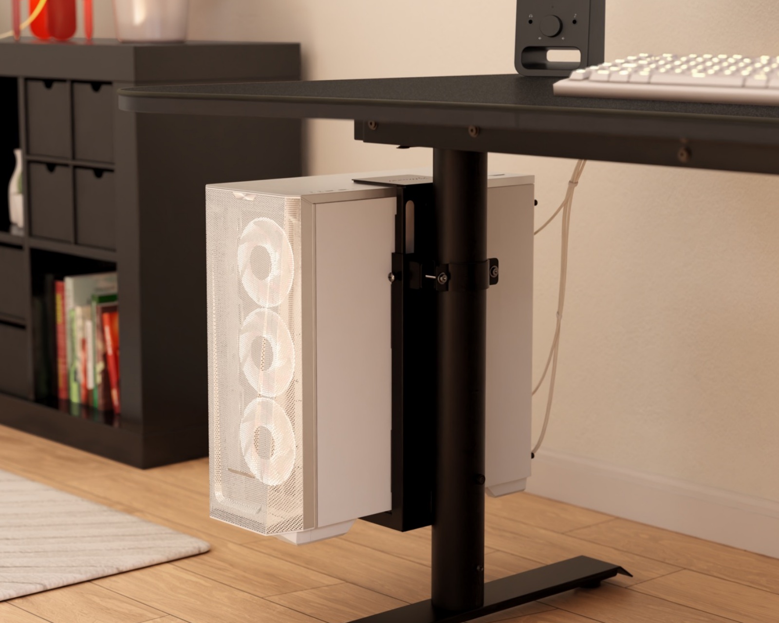 DEMO: Näyte ja testikappale. Hyvässä kunnossa.PC-kiinnitys on Arozzi-tuote, joka on suunniteltu tietokoneen kiinnittämiseen turvallisella tavalla. Sen muotoilu vapauttaa lattiapinta-alaa ja pöytätilaa, mikä tekee siitä ihanteellisen toiminnon korkeille ja säädettävillä työpöydille kuten Arena Moto. Säädettävän koon, vahvasta teräsrakenteesta ja suojaavasta pehmustuksesta koostuva kiinnitys tarjoaa toimivan ja suojaavan ratkaisun, jolla pidät asetuksesi järjestyksessä ja puhtaana.