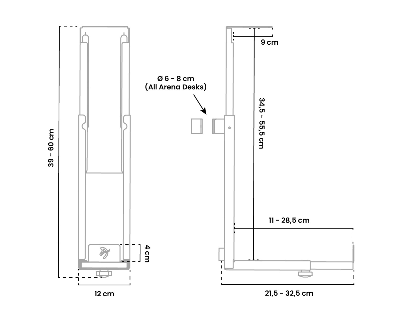 - Soveltuu korkeille ja säädettäville työpöydille