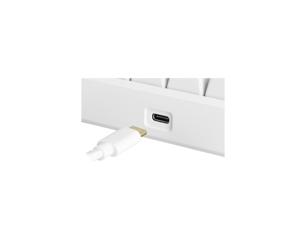 Tyylikäs mekaaninen näppäimistö valkoisella designilla. Tämä on täydellinen näppäimistö sinulle, joka rakastat LANiatai sinulle, joka vain haluat maksimoida työpöydän tilan – tämä näppäimistö nimittäin maksimoi pelitilasi, jolloin sinulla on enemmän tilaa hiirelle ja hiirimatolle, eikä näppäimistö koskaan estä hiiren liikkeitä. Irrotettava 1,8 m:n USB-C-kaapeli joustavaan ja kannettavaan näppäimistöön.