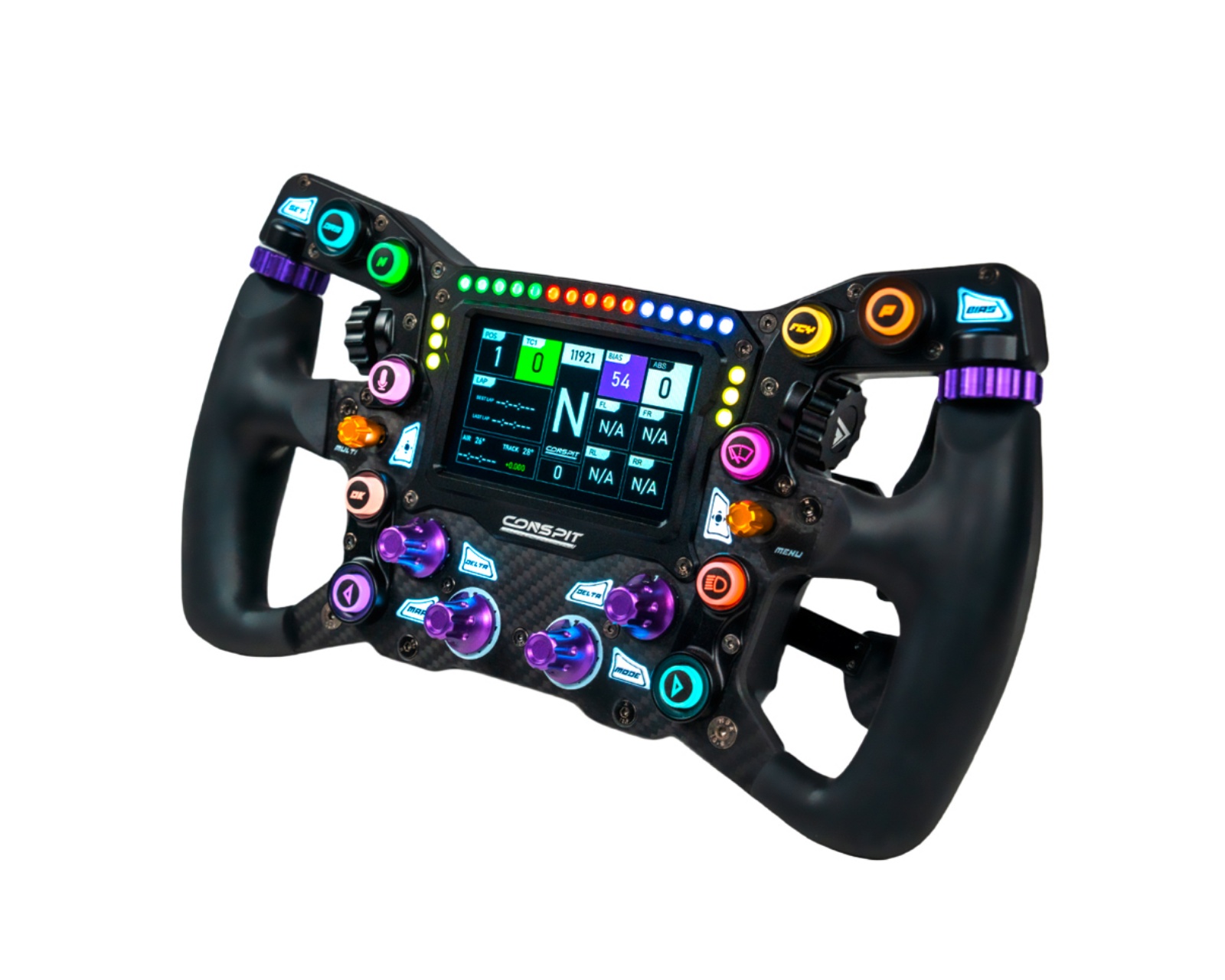DEMO: Palautus ja testikappale. Hyvässä kunnossa.MAX01 Formula on edistyksellinen kilpaohjauspyörä Conspitiltä. Sen 4 tuuman IPS-tekniikalla varustettu kosketusnäyttö, jonka tarkkuus on 800×480, tarjoaa täysin integroidun mittariston pelaajille. Se on myös yhteensopiva SimHubin kanssa ja voi näyttää telemetriatietoja sekä räätälöityjä kojelautoja reaaliaikaisesti. Ohjauspyörä on rakennettu pitkäaikaista käyttöä varten kestävällä alumiinivanteella ja hiilikuitupinnalla.