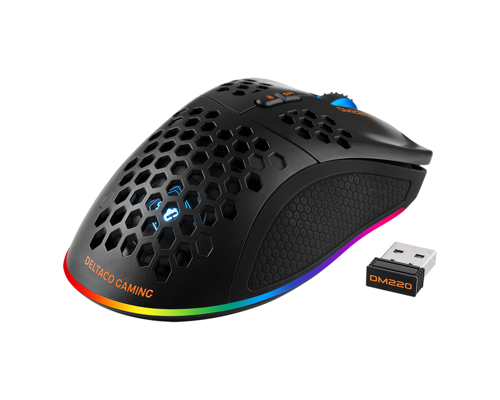 DELTACO GAMING DM220 Langaton ultrakevyt pelihiiri, paino 70 g, RGB, SPCP6651, 400-6400 DPI, 1000 Hz