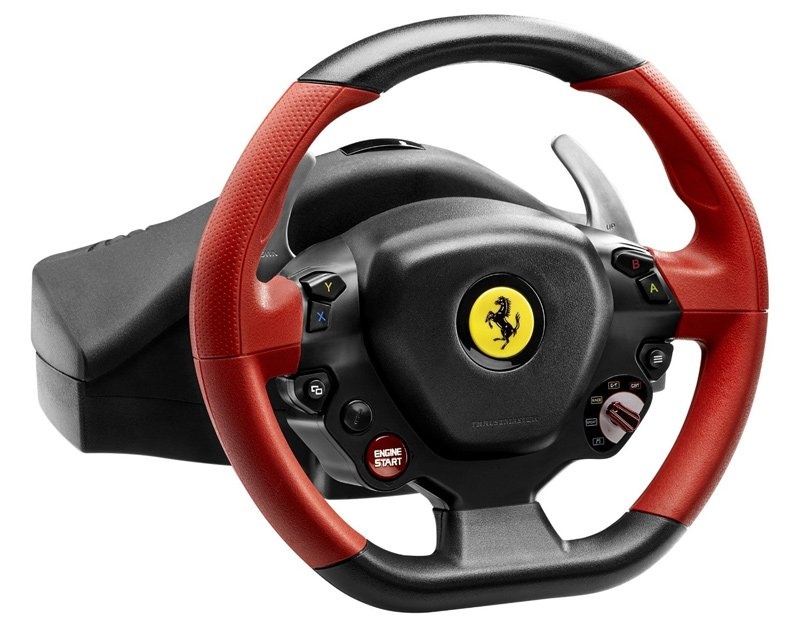 Jotta saat realistisen ajotuntuman kilpapeleissä, tarvitset realistisen peliohjauspyörän. Ferrari 458 Spider Racing Wheel on juuri sellainen. Se voi säätää ohjauksen herkkyyttä, siinä on kaksi kilpavaihde ""tyynyä"" ja kaikki Xbox One -painikkeet ovat saatavilla ohjauspyörässä. Ohjauspyörä keskittää automaattisesti ja sitä voidaan kääntää 240 astetta. Kahden polkimen korkeutta voi säätää.