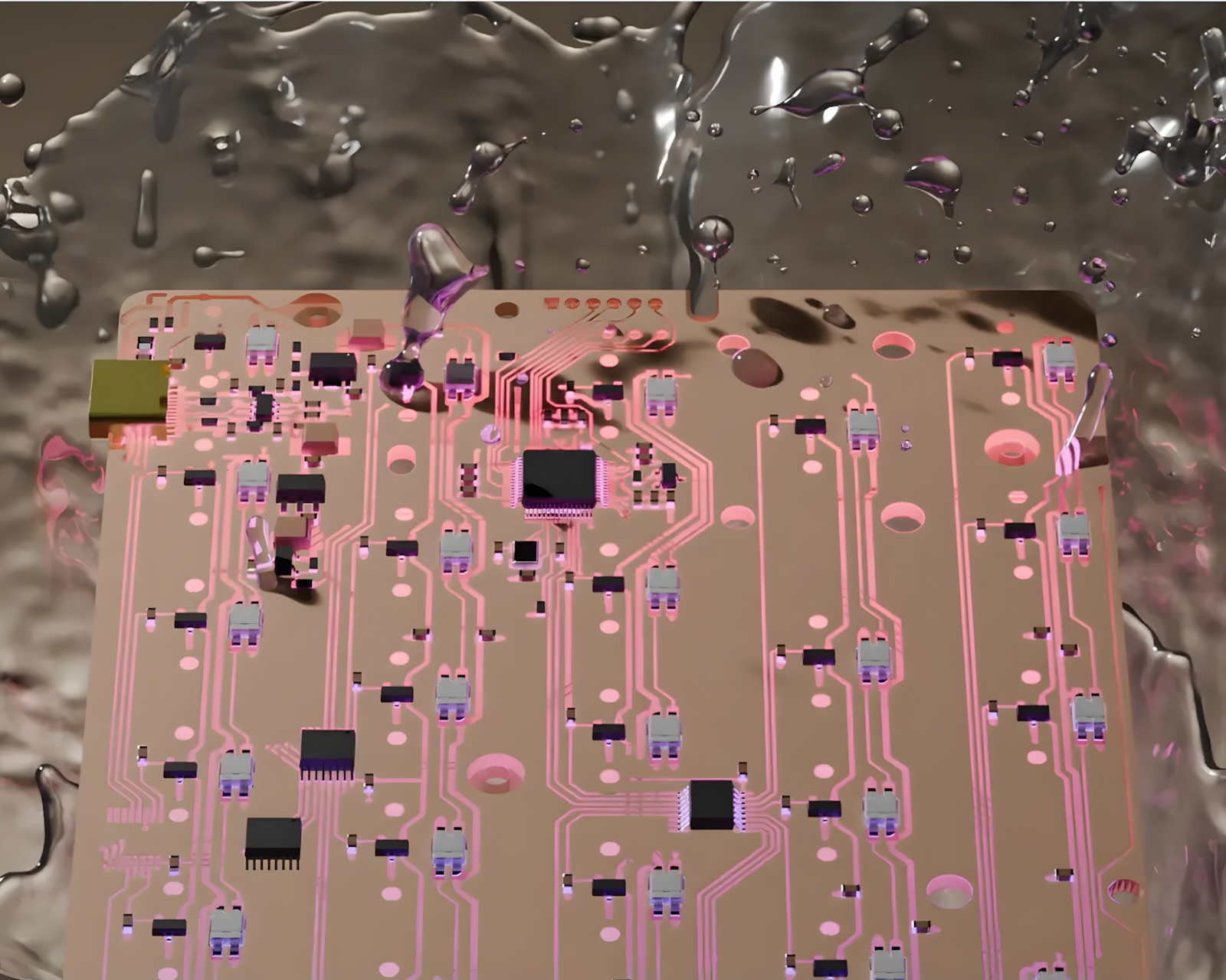 Näppäimistön yksityiskohtia ovat ainutlaatuinen "Pink Knife Pattern Carved" anodisoitu pinta, joka heijastaa kehittynyttä käsityötä. N-Key Rollover-matriisi tarjoaa käyttäjälle tukea samanaikaisille näppäinpainalluksille, mikä on tärkeää pelaamiseen. Tuotteessa on täydellinen nano-pinnoite vedenkestävyyden takaamiseksi, mikä suojaa sitä roiskeilta. Läpinäkyvä magneettinen kytkinjärjestelmä tarjoaa kirkkaan näkyvyyden ja synkronoituu RGB-efektien kanssa, luoden visuaalisen elämyksen.