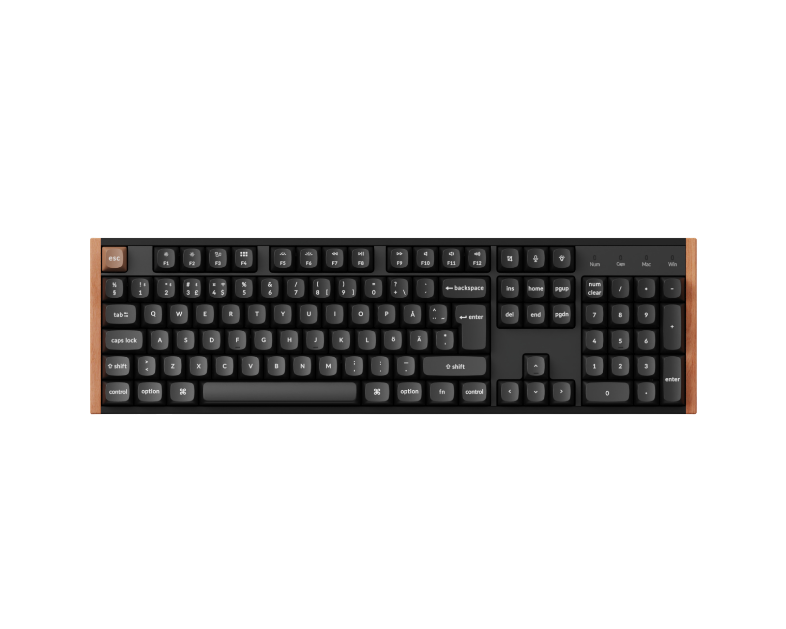- Kaksipintaiset PBT-näppäinkappaleet lisääntyneelle kestävyydelle