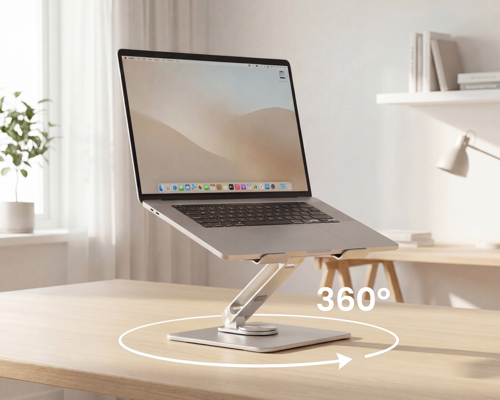 DEMO: Palautettu ja testikappale. Hyväkuntoinen.Tämä on MaxMountin kannettavalle tietokoneelle tarkoitettu teline, joka tarjoaa ainutlaatuisen suunnittelun joustavaa käyttöä varten. Tämä teline voidaan kääntää 360 astetta, mikä helpottaa näytön jakamista kokouksissa tai tehtävien vaihtamisessa. Se on yhteensopiva kannettavien tietokoneiden ja tablettien kanssa, joiden koko on 11–17 tuumaa. Ergonominen muotoilu mahdollistaa kulman säätämisen optimaalisen katselukorkeuden saavuttamiseksi ja näin parantaa käyttömukavuutta. Taitettavan rakenteen ansiosta kuljetus ja säilytys ovat helpompia.
