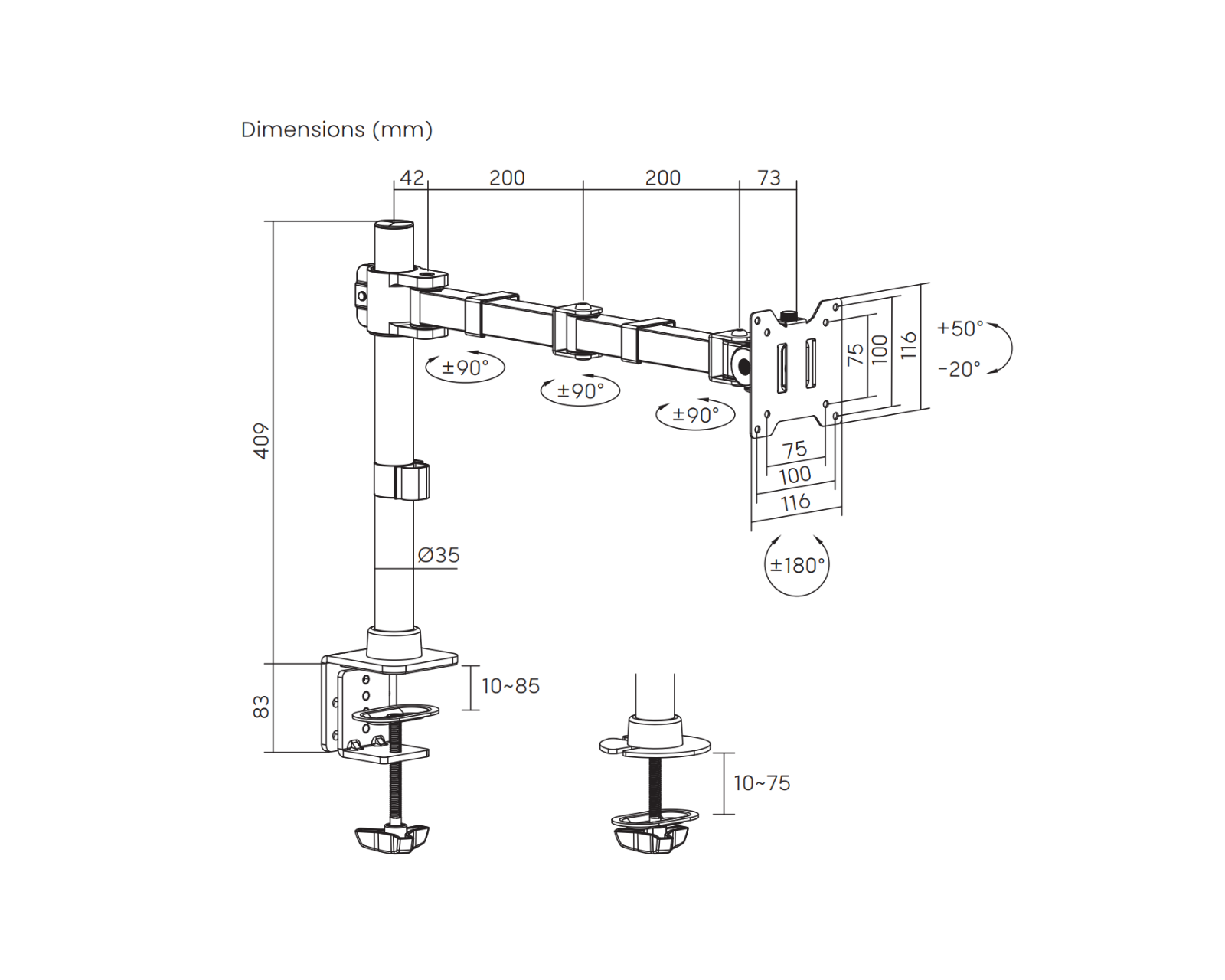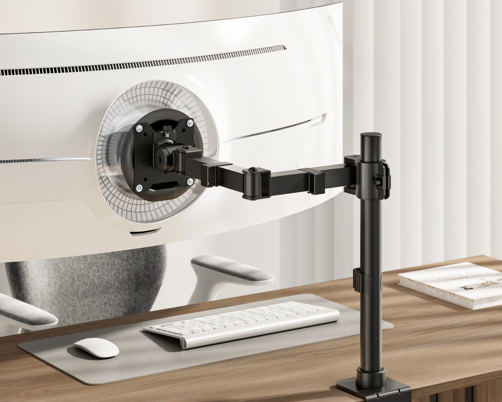 Monitorivarsi on valmistettu kestävästä materiaalista, joka varmistaa pitkäaikaisen kestävyys ja luotettavuuden. Vapaa korkeuden säätö tekee paikannuksen mukauttamisesta helppoa työympäristön optimoimiseksi. Kääntyvyys tarjoaa useita katselukulmia ja 360° kääntyvä VESA-levy mahdollistaa lisäsäätöjä. Vapaan kallistusmuotoilun soveltaminen antaa käyttäjän säätää kulmaa tarpeen mukaan.