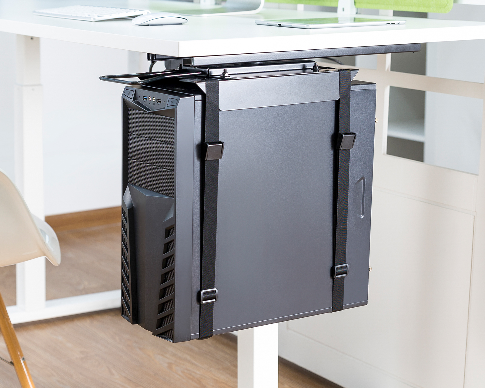 Esittelemme MaxMount Strap-On -työpöytätelineen CPU:lle - ultimatiivinen ratkaisu tilan vapauttamiseen ja arvokkaan tietokoneesi suojaamiseen. Tämä kannettavan hihnan muotoilun ansiosta CPU-teline on helppo asentaa ja kiinnittää tietokoneesi varmasti pöydän alle.
