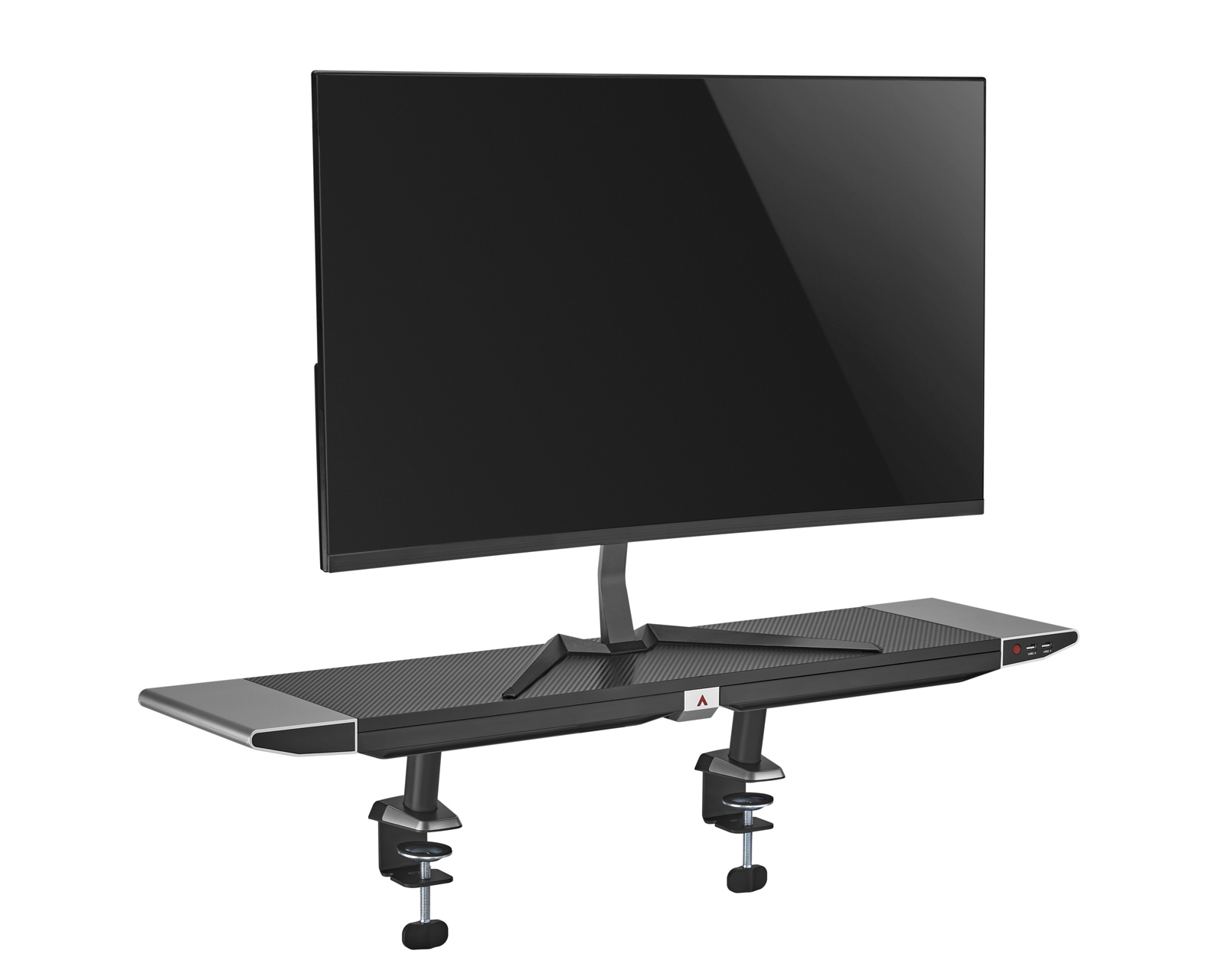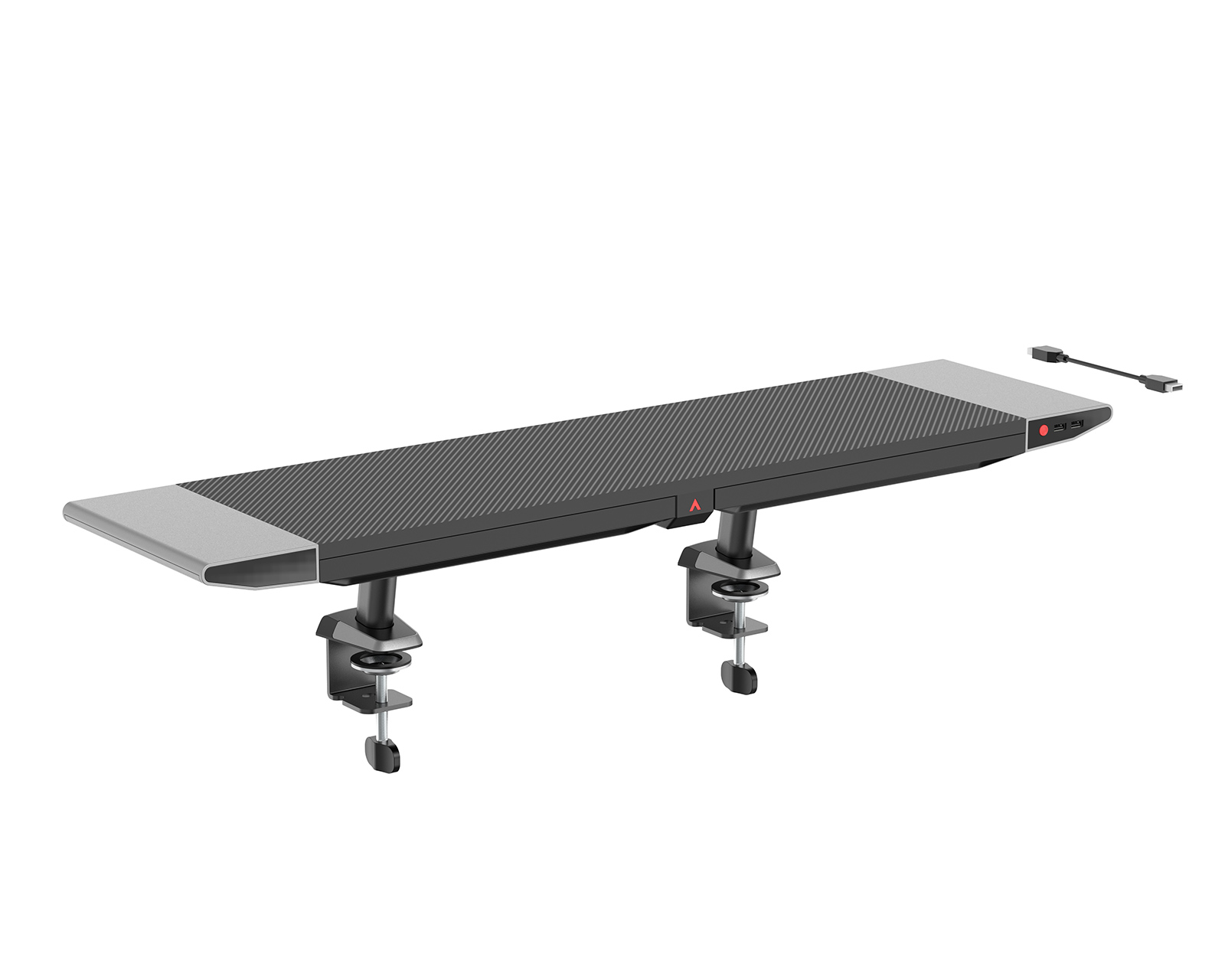 Kiinnityskiinnikkeen avulla jalusta kiinnittyy tukevasti pöytään ja tarjoaa vertaansa vailla olevan vakauden. Sano hyvästit heiluville asetuksille ja tervetuloa peliasemallesi vankka perusta. Mutta se ei lopu tähän, näytön nousuputkessa on myös kaksi sivutaskua kaikille pienille toimistotarvikkeillesi, mikä tekee järjestämisestä helppoa.