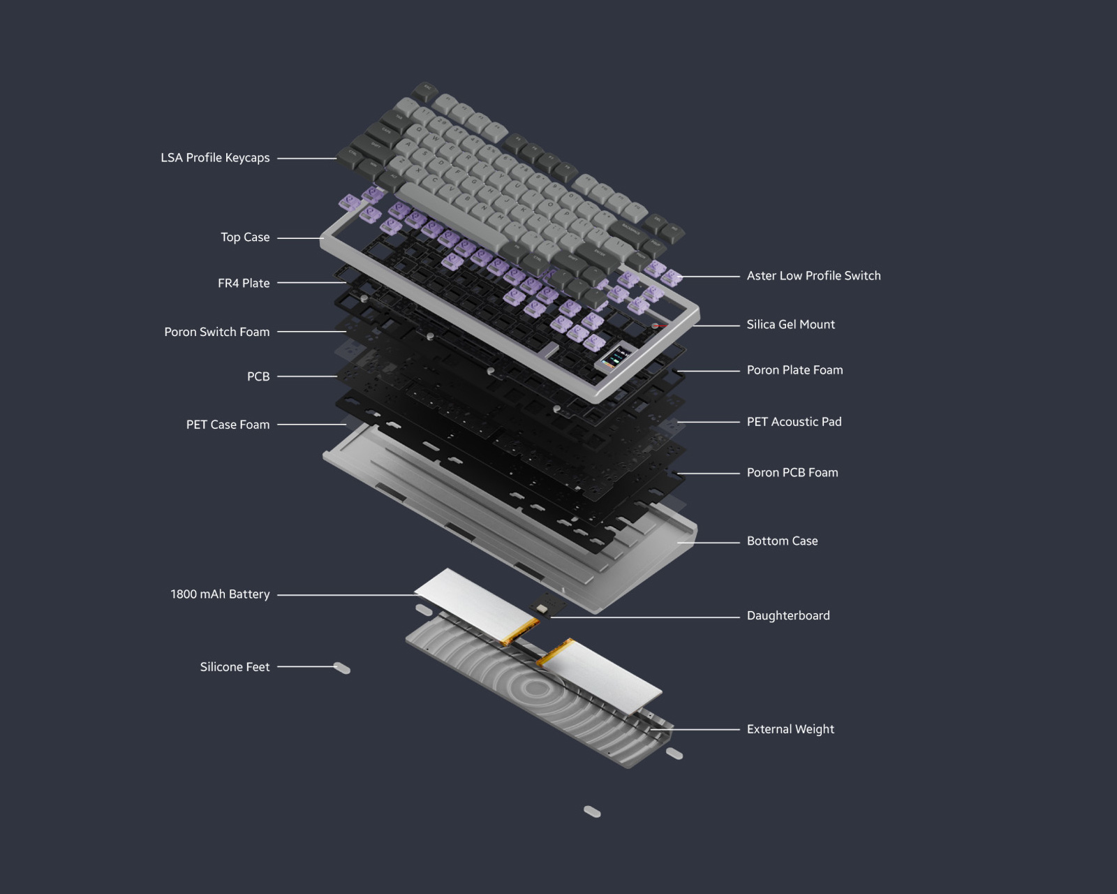 DEMO: Uusintaosto ja koekappale. Hyvässä kunnossa.Koe maailman ensimmäinen matalaprofiilinen näppäimistö, jossa on CNC-koneistettu alumiinirunko, magneettinen kiinnitysrakenne, eloisat värit ja LCD-näyttö. ND75 LP on aloittelijaystävällinen, ja se toimitetaan valmiiksi koottuna kestävillä, kaksoislyönnillä varustetuilla PBT-näppäinhatuilla ja matalaprofiilisilla kytkimillä tyylikkään kirjoituskokemuksen takaamiseksi. Sen 1,2 mm:n kolmitilapiirilevy ja kaksi 1800 mAh:n akkua tarjoavat joustavuutta sekä kotona että tien päällä.