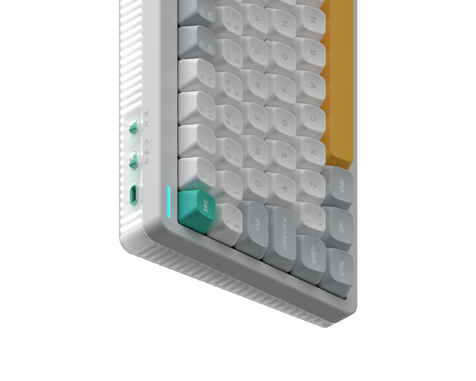 Näppäimistön rakenteen materiaaliin kuuluu alumiinipinnoite ja ABS-pohja, mikä tarjoaa vakautta ja kestäväisyyttä. Siinä on PCB kumikiinnitys, joka optimoi äänen ja tunteen näppäinpainalluksissa. Kytkintä on saatavilla eri versioina, mukaan lukien NuPhy Mint, Raspberry ja Lemon, mikä tarjoaa erilaisia painovastuksia ja äänen karakteristiikkaa. Lisäksi näppäimistössä on korkealaatuiset RGB-LED-valot, joissa on yli 40 erilaisista valaistusasetusta. Hot-swap tuen myötä käyttäjät voivat helposti vaihtaa kytkimiä ilman juottamista.