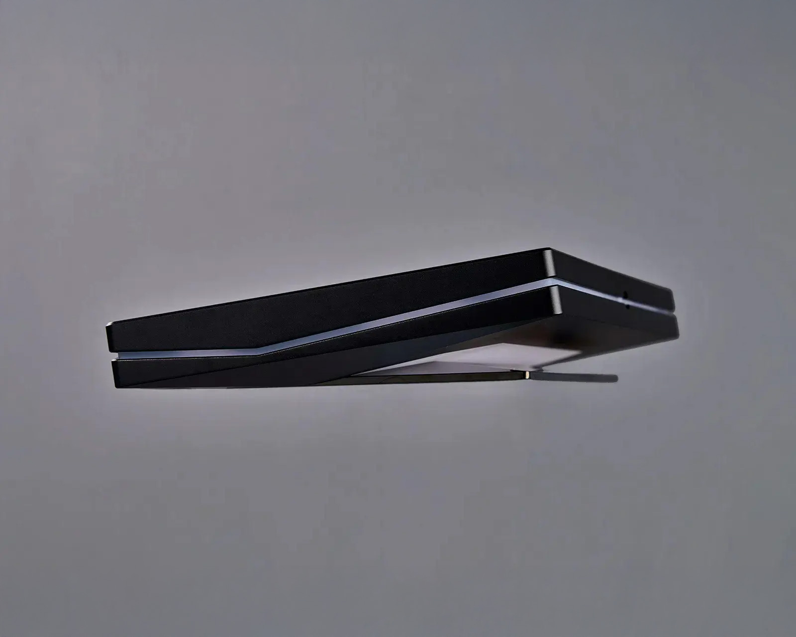 - Kelluva taittuva valaistus kotelon keskellä: Tarjoaa tasaisen ja tasapainoisen valaistuksen, joka on saanut inspiraationsa paperilentokoneiden eleganteista taitoksista.
