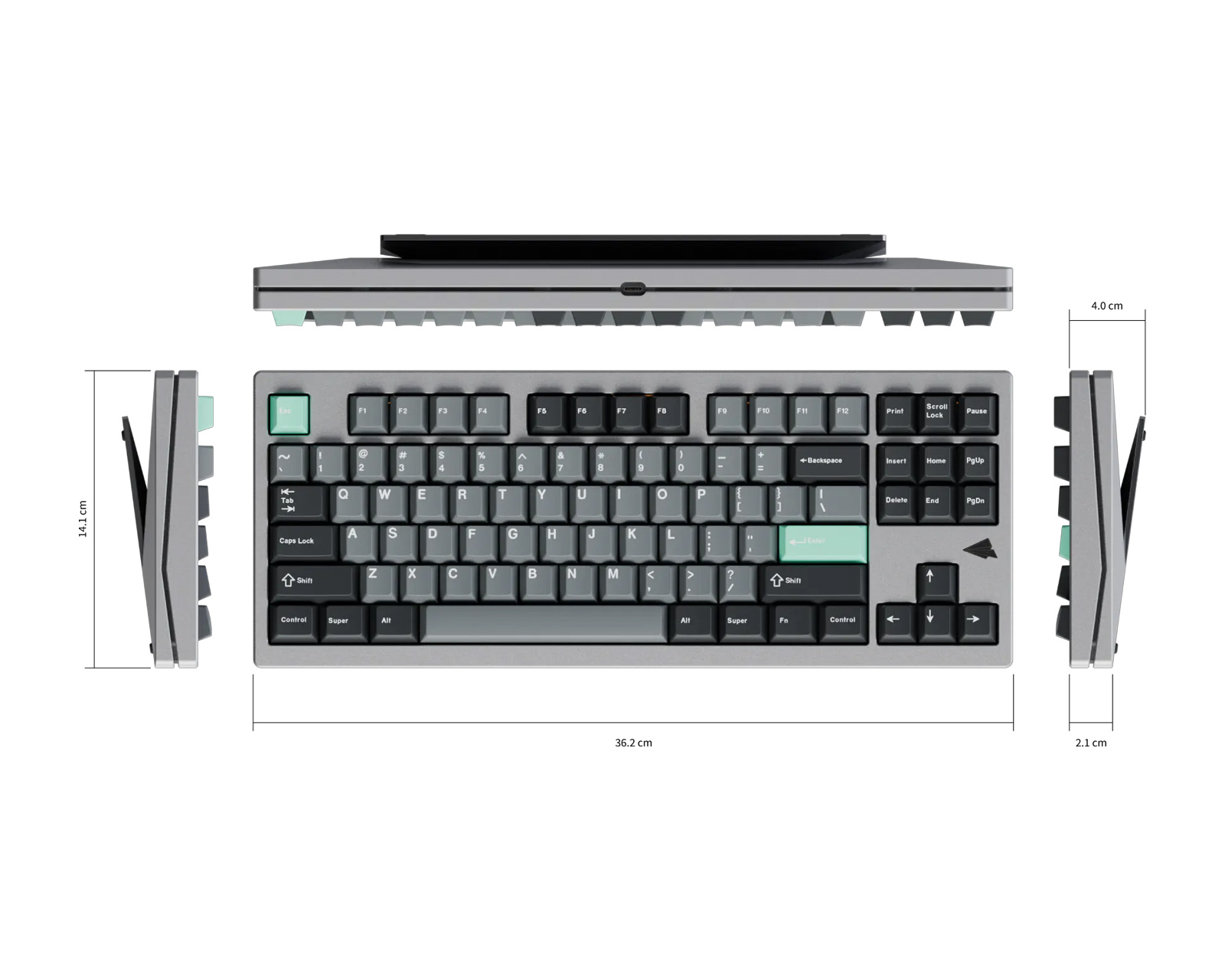 DEMO: Uusintaosto ja koekappale. Hyvässä kunnossa.Nosta kirjoituskokemuksesi uudelle tasolle PAPER80-näppäimistöllä, jossa muoto kohtaa toiminnallisuuden innovatiivisimmalla tavalla. Paperilentokoneen siroista linjoista inspiraationsa saanut PAPER80:n jokainen yksityiskohta on huolellisesti suunniteltu tarjoamaan sekä esteettistä loistoa että erinomaista suorituskykyä. Kotelon keskellä oleva kelluva taittovalaistus ei ainoastaan luo rauhoittavaa ja tasapainoista hehkua, vaan myös yhdistää alumiinirungon tarkalla valaistuksella. Tätä täydentää huolellisesti valmistettu paperilentokonelogo selkeine 3D-taittuneena, jotka näyttävät kelluvan pinnasta. Mittatilaustyönä valmistettu LED-hajotin korostaa vain tärkeimmät muotoiluelementit säilyttäen jokaisen viivan ainutlaatuisen tekstuurin ja luonteen. Tarkasti suunniteltu innovatiivinen avaimenreiän muotoinen kumitiiviste vähentää näppäimistön tärinää ja tarjoaa samalla juuri oikeanlaisen tuntuman poikkeuksellisen käyttökokemuksen saavuttamiseksi.