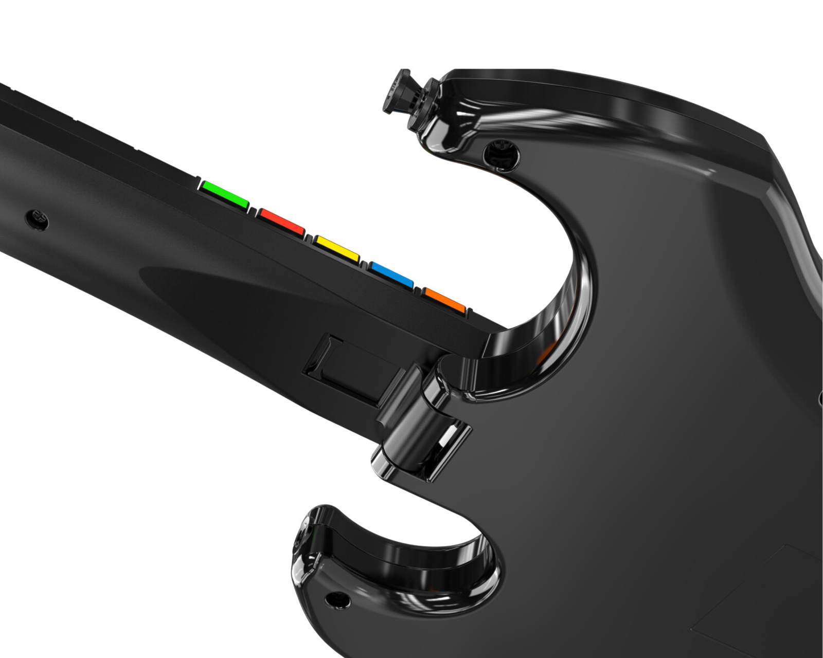 Ääntä voidaan helposti säätää suoraan D-padista, mikä tarjoaa sujuvan ja intuitiivisen käyttäjäkokemuksen. Lisäksi kitarakontrolli on taitettava, mikä tekee sen mukana kuljettamisesta helppoa tai säilyttämisestä, kun sitä ei käytetä. Täydellinen yhdistelmä toiminnallisuutta ja kannettavuutta!