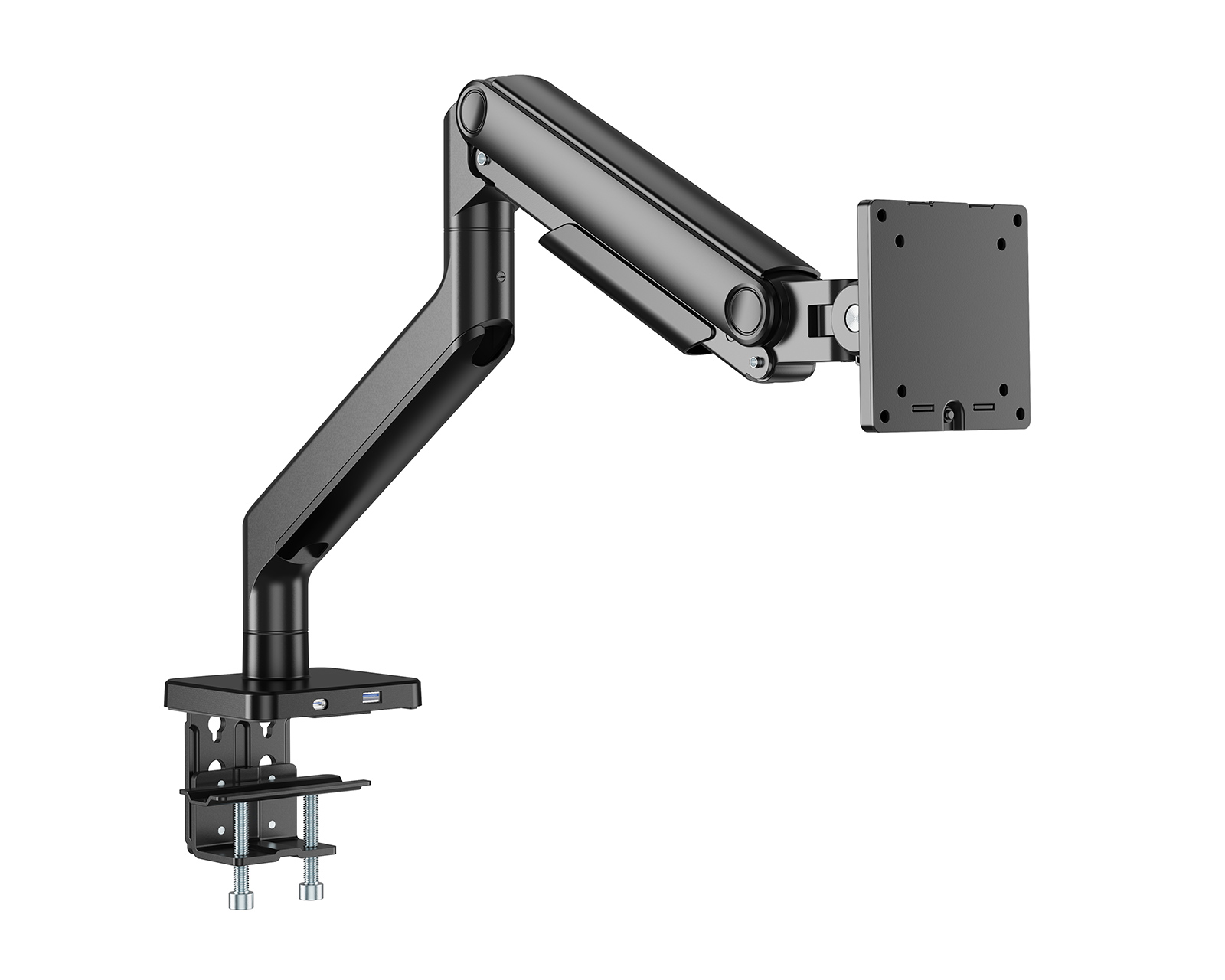 Sen ylivoimaisen kestävyyden ja lujuuden ansiosta voit luottaa siihen, että näyttösi seisoo turvallisesti ilman, että sinun tarvitsee huolehtia rasituksesta tai epävakaudesta. Lisäksi voit helposti säästää arvokasta työtilaa tällä käytännöllisellä näyttötelineellä, koska näyttö nostetaan pöydältä ja saat ylimääräistä tilaa tärkeimpien tavaroiden järjestämiseen. USB-A- ja USB-C-portin ansiosta varsi täyttää kaikki yksinkertaisen ja tehokkaan latauksen ja tiedonsiirron vaatimukset.