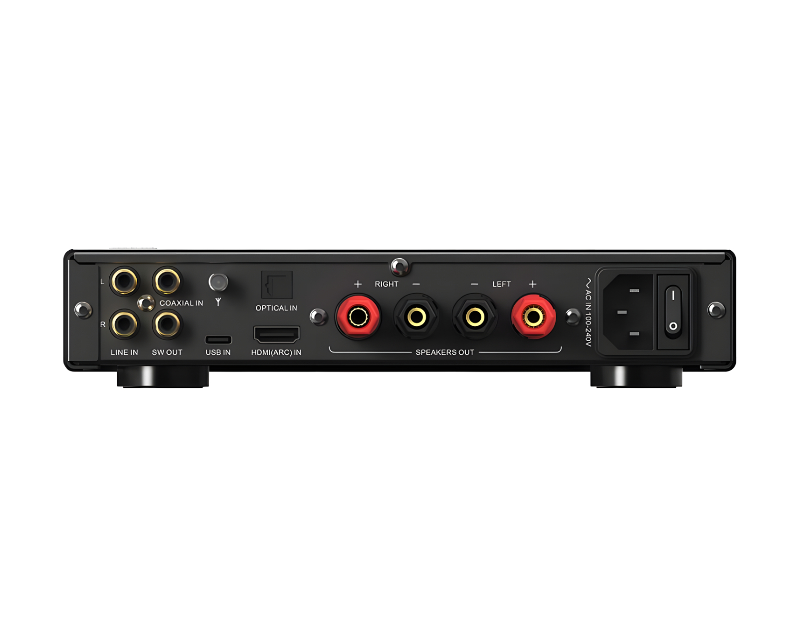 | Högtalarutgångar, Hörlursutgångar (6.35mm & 4.4mm balanserad), Subwoofer Pre-out | |