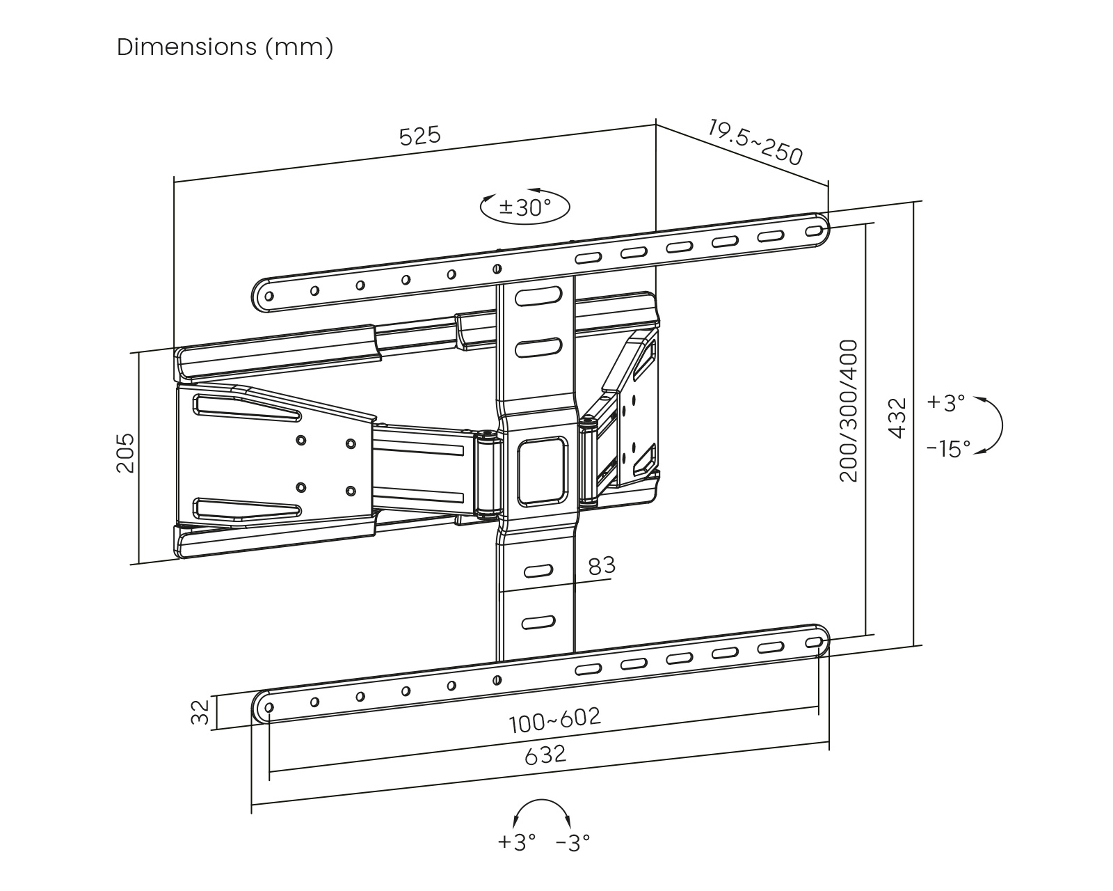 Tämä malli on suunniteltu erityisesti useimmille 43"-90" televisioille, ja se vie katselukokemuksesi uudelle tasolle. Sen erittäin ohuet täyden liikkuvuuden ominaisuudet varmistavat, että matalasta profiilistaan huolimatta joustavuuden ja toimivuuden suhteen ei tehdä kompromisseja. Tämä ensiluokkainen seinäteline tuo televisiosi lähemmäs seinää kuin koskaan ennen ja luo tyylikkään, virtaviivaisen ilmeen, joka täydentää mitä tahansa sisustustyyliä.