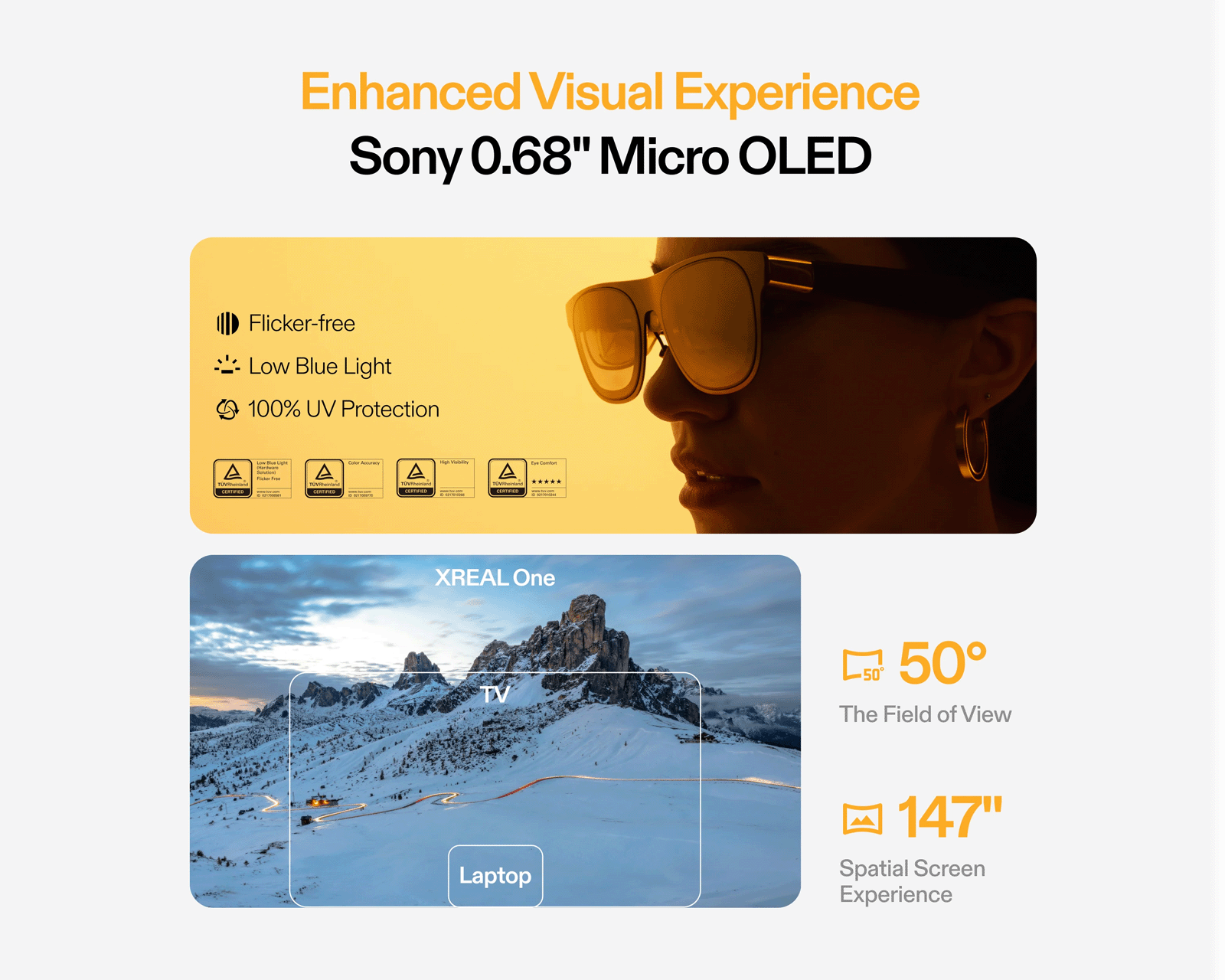 - Jopa 147 tuuman virtuaalinäyttö 50 asteen FOV:llä