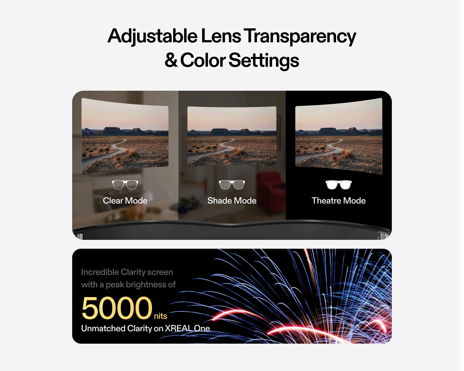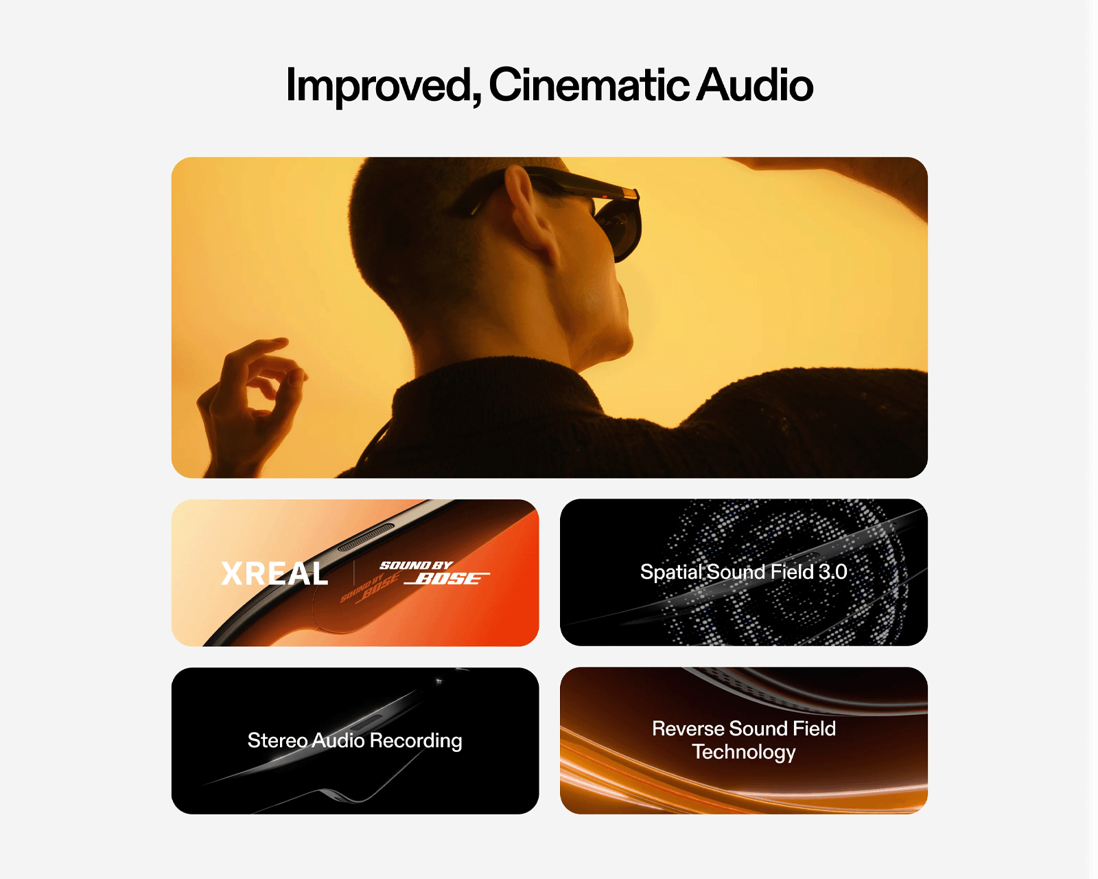 XREAL Onen 0,68 tuuman Sony Micro-OLED-näyttö tarjoaa kristallinkirkkaan virtuaalikuvan, joka on yhtä suuri kuin 147 tuuman projektorinäyttö. Äänikokemus on lisäksi optimoitu Bosen toimesta tarjoamaan sävykkään ja hyvin tasapainoisen äänen, joka luo kokonaisvaltaisen elämyksen, joka mullistaa mediasisältösi kulutuksen. Täydellinen pelikokemukseen, lasit on varustettu jopa 120 Hz:n virkistystaajuudella saumattoman ja realistisen pelitunteen saavuttamiseksi. XREAL One on myös yhteensopiva useiden laitteiden, kuten iPhone, Android, MacBook, Steam Deck ja Nintendo Switch, kanssa, mikä tekee siitä monikäyttöisen kumppanin arjessasi.