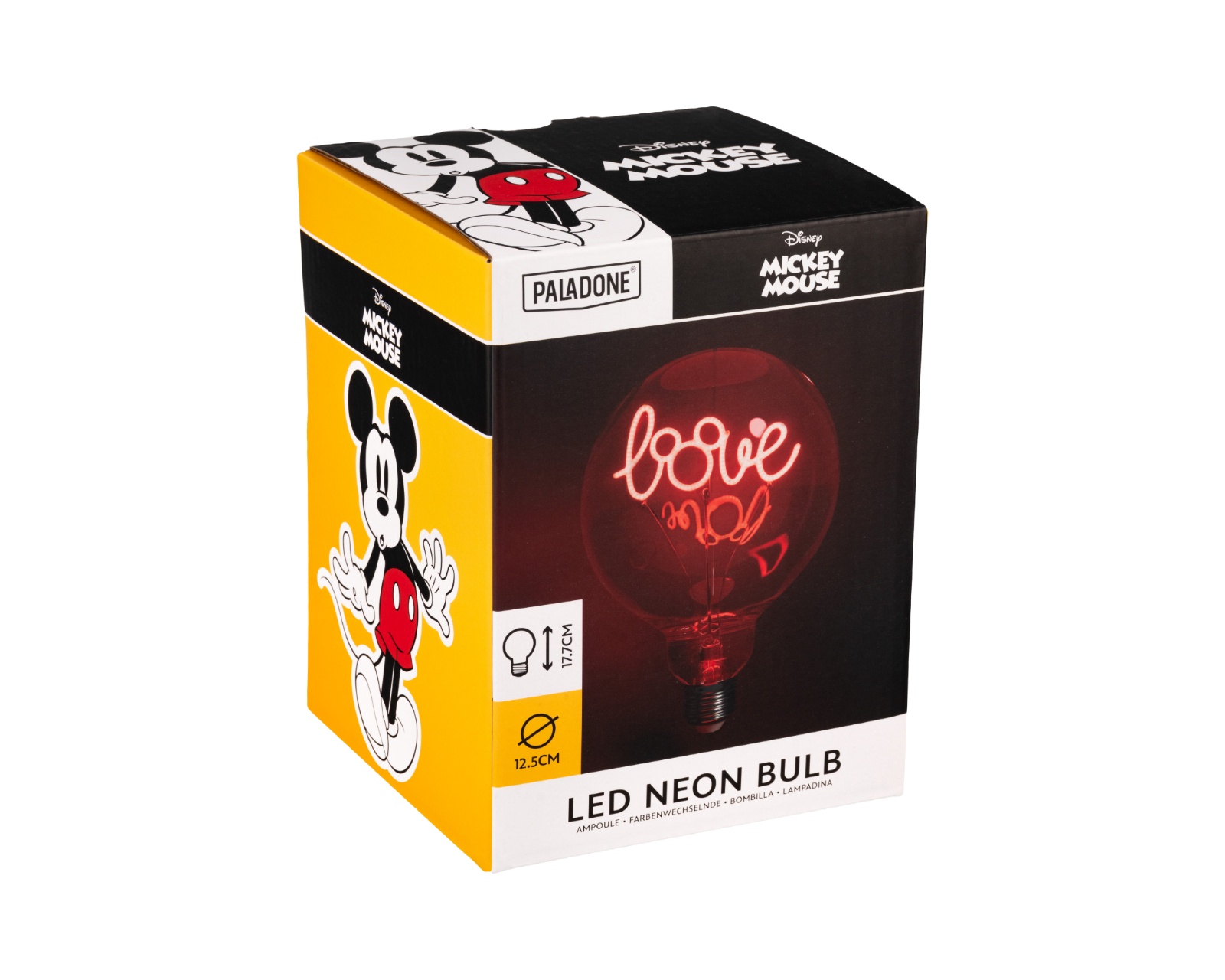 Levitä Disney-taikuutta kotiisi Mikki Hiiri LED-neonlampulla, joka sopii täydellisesti viihtyisän ja leikkisän tunnelman luomiseen. Lamppu on 24,3 cm korkea ja siinä on koristeellinen E27-LED-lamppu, joka muotoilee tyylikkäästi sanan "rakkaus" ikonisten Mikki Hiiri -korvien avulla. Lamppu hehkuu lämpimän punaisena ja on suljettu kirkkaaseen lasiin, mikä tekee siitä erinomaisen koristeellisen yksityiskohdan missä tahansa huoneessa.Lampun keraaminen jalusta tarjoaa sekä vakautta että tyyliä, ja mukana tuleva virtajohto tekee käytöstä helppoa. Disneyn virallisesti lisensoima valaisin sopii täydellisesti makuuhuoneisiin tai muihin tiloihin, jotka kaipaavat taianomaista ilmettä.