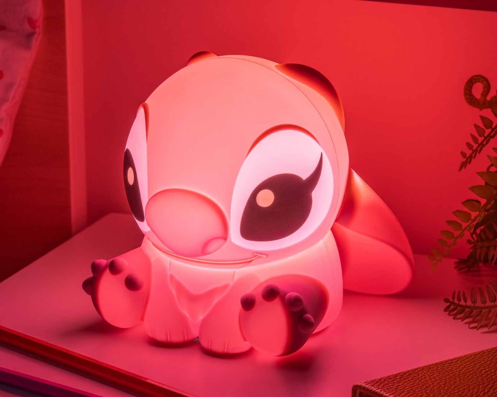 Angel SquishyGlo silikonilamppu on uudenaikainen valaistusratkaisu, jonka Paladone on suunnitellut tuomaan leikkisää tunnelmaa kotiisi. Tämä 14,5 cm (5,7") korkea lamppu on muotoiltu enkeliksi, ja se on valmistettu lapsiystävällisestä, pehmeästä silikonista, mikä tekee siitä turvallisen ja helpon käsitellä. Fiksu automaatti-ollaan toiminto aktivoituu 1-3 tunnin jälkeen, tarjoten käytännöllistä käyttöä sekä lapsille että aikuisille. Lisäksi siinä on kolme erilaista kirkkaustasoa, joten voit säätää sen luomaan rauhallista tunnelmaa nukkumaan mennessä.Lampun komponentteihin kuuluu integroitu, irrotettava ladattava akku, jota voidaan ladata mukana tulevalla USB-kaapelilla. Kun se on ladattu, se on langaton, mikä antaa vapauden sijoittaa se minne tahansa huoneeseen. Lampun kompakti muotoilu tekee siitä helpon siirtää yöpöydän ja hyllyjen välillä. Koska se on sidottu Lilo & Stitch -universumiin, se on myös täydellinen koristeellinen yksityiskohta sarjan faneille, tuoden kodikkaan ja leikkisän tunnelman lastenhuoneeseen tai olohuoneeseen.