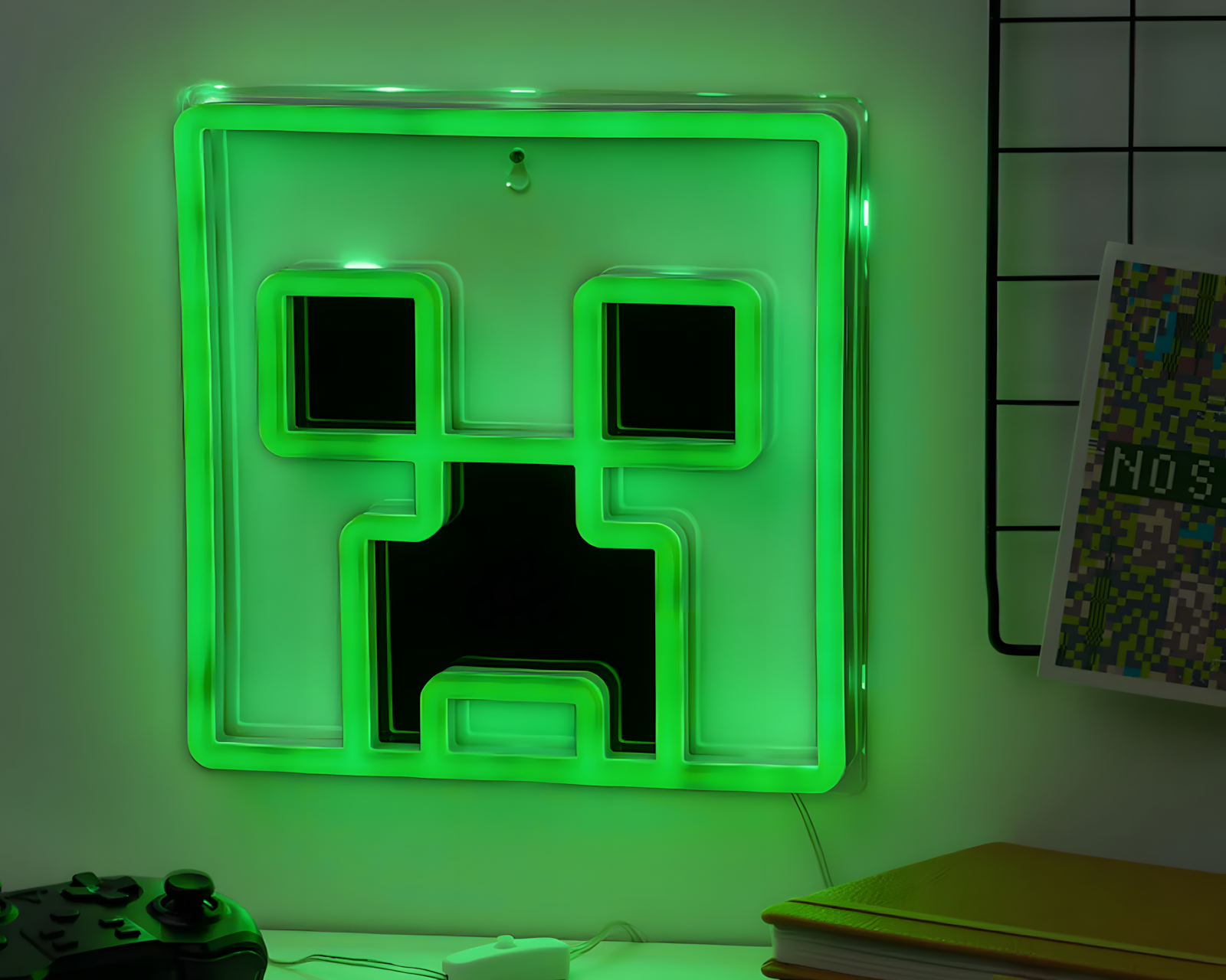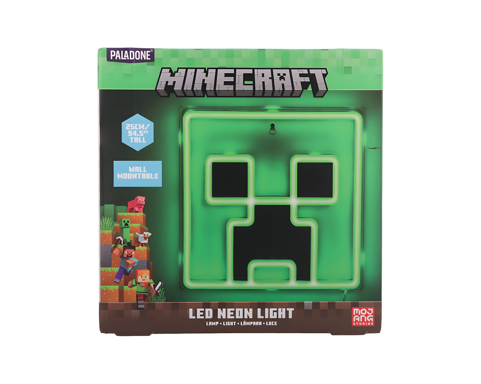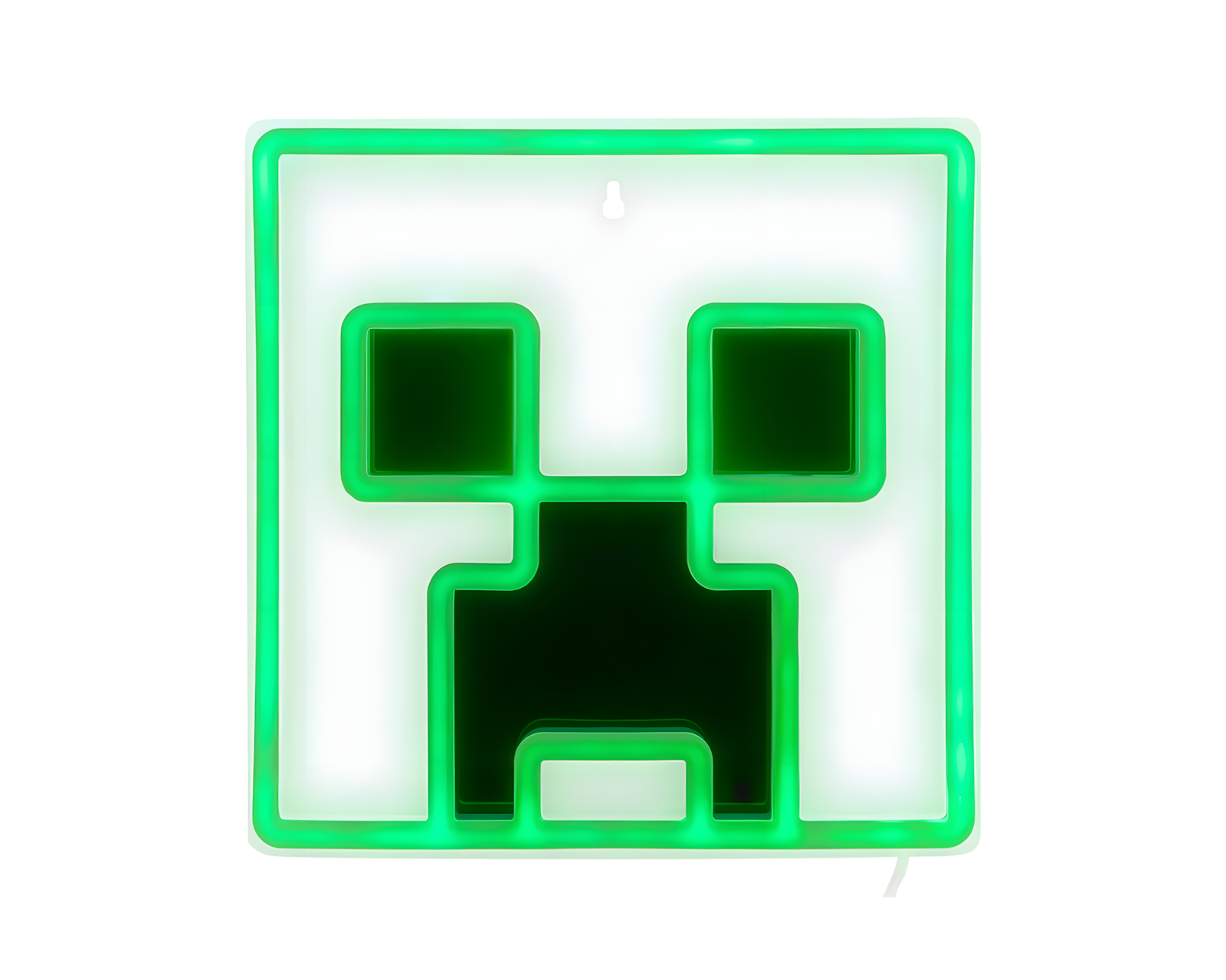 Creeper Seinäasennettava LED Neonlamppu on valaistus tuote Paladonelta. Se on 25 cm (9,4") korkea ja voidaan asentaa seiniin. Lamppu kuvastaa ikonista Creeper-hahmoa Minecraftista ja säteilee intensiivistä vihreää valoa, joka luo leikkisän vaikutelman eri huoneissa ja ympäristöissä. Se on käytännöllinen pelaajille, jotka haluavat koristella huoneensa peliin liittyvillä esineillä. Lamppu toimii USB-kaapelilla, joka on kiinnitetty laitteeseen.Tämä LED-lamppu on valmistettu keskittyen kestävyyteen ja laatuun. Siinä on vakaa rakenne, joka mahdollistaa sen asentamisen seinälle ilman ongelmia. Vihreä valo luo miellyttävän tunnelman ja sitä voidaan käyttää pimeän huoneen valaistamiseksi tai koriste-elementtinä pelihuoneessa. Tuote on virallisesti lisensoitu Minecraftilta, mikä tarkoittaa, että muotoilu on uskollinen pelin estetiikalle. Laite soveltuu käytettäväksi pelihuoneissa, opiskelutiloissa tai lahjana pelaajalle.