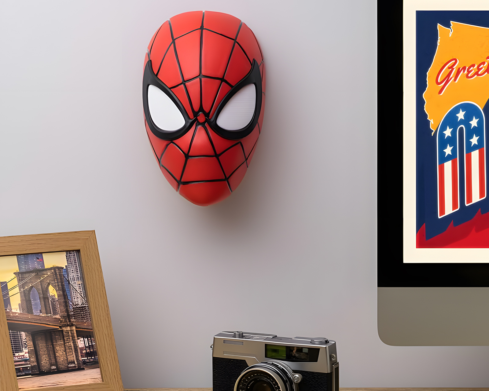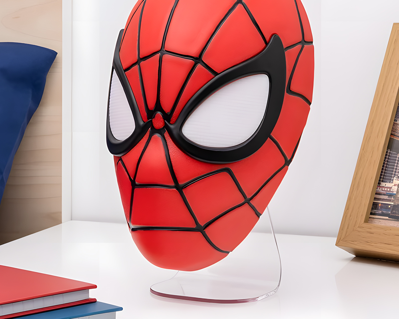 Spiderman Mask Light on Paladonen lamppu. Tämä LED-lamppu saa inspiraationsa ikonisestä Spiderman-maskista ja on suunniteltu popkulttuurin ja pelaamisen harrastajille. Lamppu on valmistettu kestävästä muovista ja luo ainutlaatuisen tunnelman kotiisi tai pelihuoneeseesi.Spiderman Mask Lightin rakennelaatu on korkea ja se on virallisesti lisensoitu, mikä takaa, että yksityiskohdat ovat uskollisia alkuperäiselle suunnittelulle. Lamppu on saatavana väreissä musta, punainen ja valkoinen, mikä tekee siitä helpon lisäyksen erilaisiin sisustuksiin ja tyyleihin. Energiatehokas LED-teknologia antaa pehmeää ja miellyttävää valoa, joka on täydellinen sekä olohuoneeseen että yövalaistukseksi. Sen koon ja muotoilun ansiosta lamppu voidaan helposti sijoittaa hyllyille tai työpöydille, mikä tekee siitä erinomaisen keräilyesineen faneille.