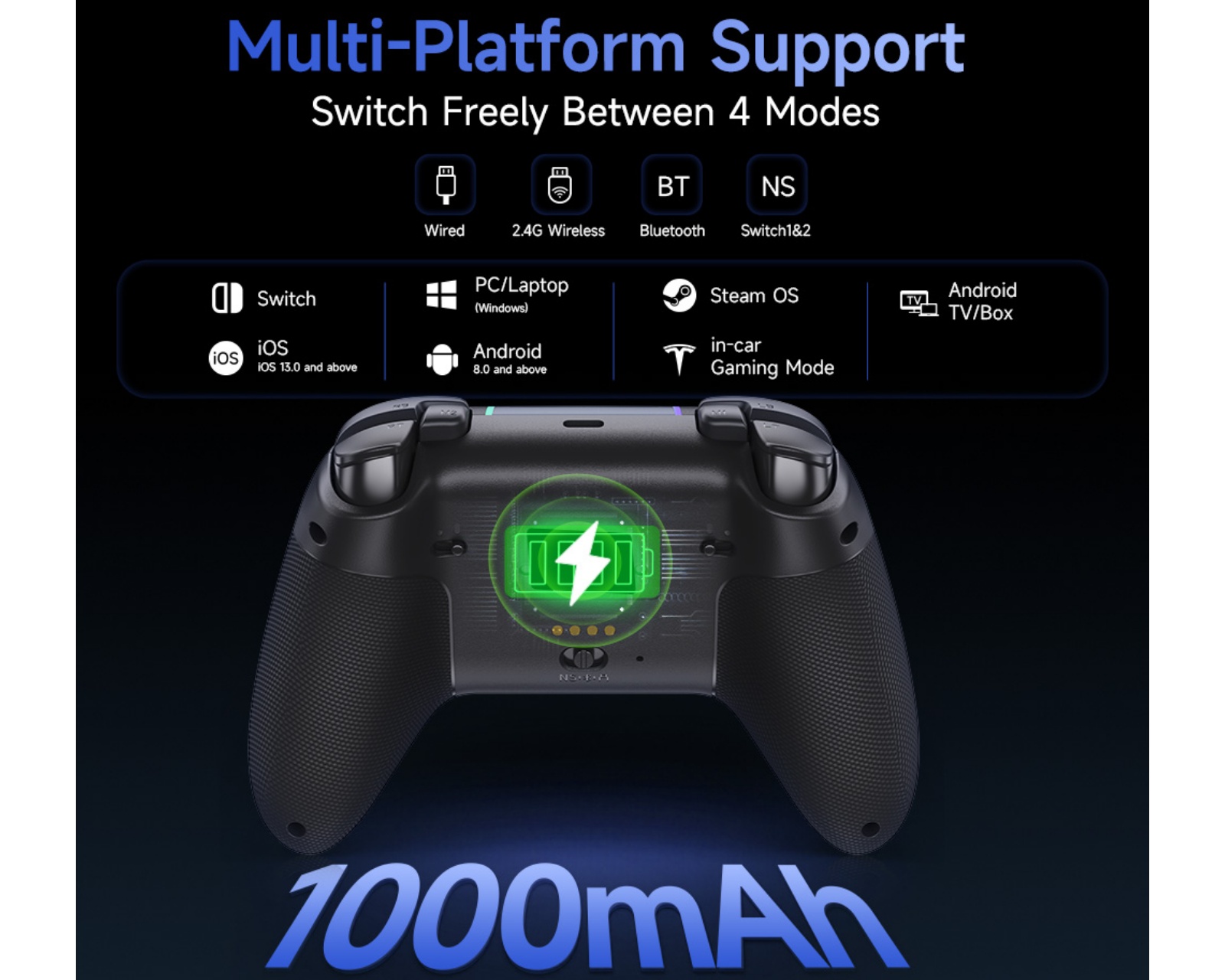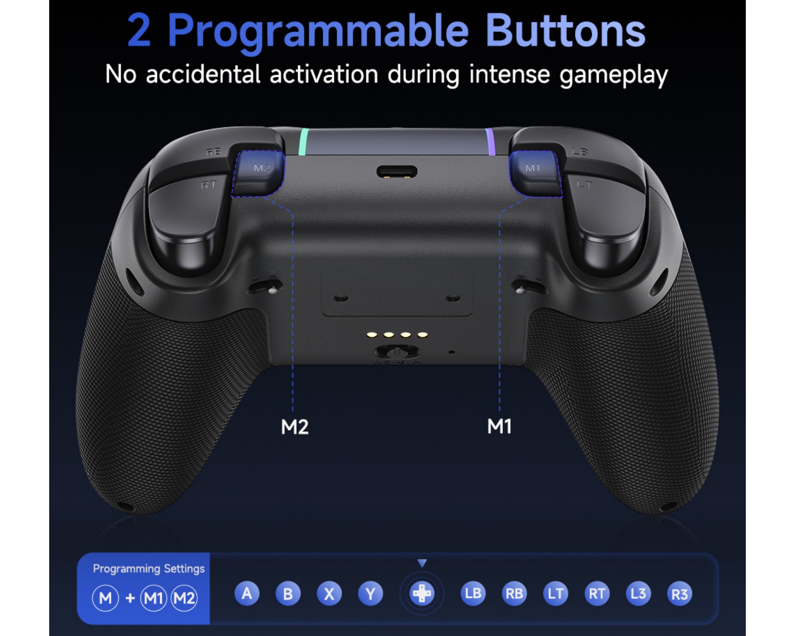 EasySMX X05Pro on langaton peliohjain, joka tukee useita alustoja. Se on erityisesti suunniteltu käytettäväksi PC:llä, Nintendo Switchillä ja mobiililaitteilla. Ohjaimessa on äänieristyspainikkeet hiljaista pelielämystä varten ja se tarjoaa edistyksellisen kaksivaiheisen Hall-trigger-ratkaisun lisääntyneeseen tarkkuuteen peliohjauksessa. Se on rakennettu korkealaatuisista materiaaleista ja integroi Hall-efekti joystickit, jotka mahdollistavat pitkäkestoisen ja responsiivisen käytön.Lisäksi se tarjoaa 8-suuntaisen D-pad:in tarkkaan suuntaan ja yhdistelmien toteuttamiseen sekä päivitetyn tärinäsysteemin parannettuun palautteeseen pelin aikana. Ohjain tukee myös RGB-valaistusta, jossa on mukautettavissa olevat värit henkilökohtaista kosketusta varten.