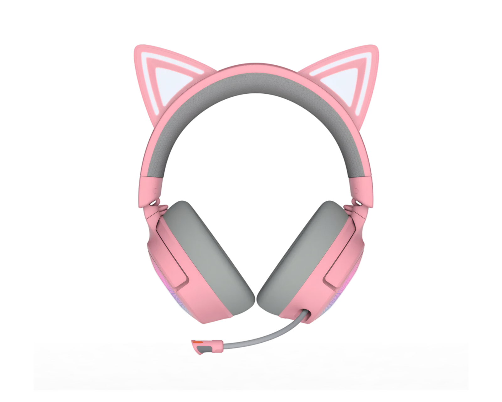 Kraken Kitty V3 Pro on langaton pelikuulokemikrofoni Razerilta, joka on suunniteltu tunnusomaisilla kissakorvilla ja Razer Chroma™ RGB-valaistuksella. Se tarjoaa kolme eri liitäntävaihtoehtoa, mukaan lukien 2.4 GHz ja Bluetooth 5.3, sekä erittäin laajan mikrofonin kirkasta äänen toistoa varten. Tämä kuulokemikrofoni on suunnattu pelaajille, jotka etsivät tyyliä ja toimivuutta pelielämyksessä.Kuulokkeissa on proteininaahkakuoret muistivaahtomuovilla lisäämään mukavuutta ja äänieristystä. Joustava ja irrotettava Razer™ HyperClear -mikrofoni omaa laajan taajuusvasteen, mikä tekee käyttäjän äänestä selvän. Razer™ TriForce Titanium 40 mm -kaiutinelementit tarjoavat kuunteluelämyksen kirkkailla korkeilla äänillä, tasaisilla keskitaajuuksilla ja syvillä bassoilla, mikä johtaa selkeään ja tasapainoiseen äänikuvaan. Laite tukee THX Spatial Audioa 7.1-äänentoistoa varten, mikä antaa syvemmän pelielämyksen.