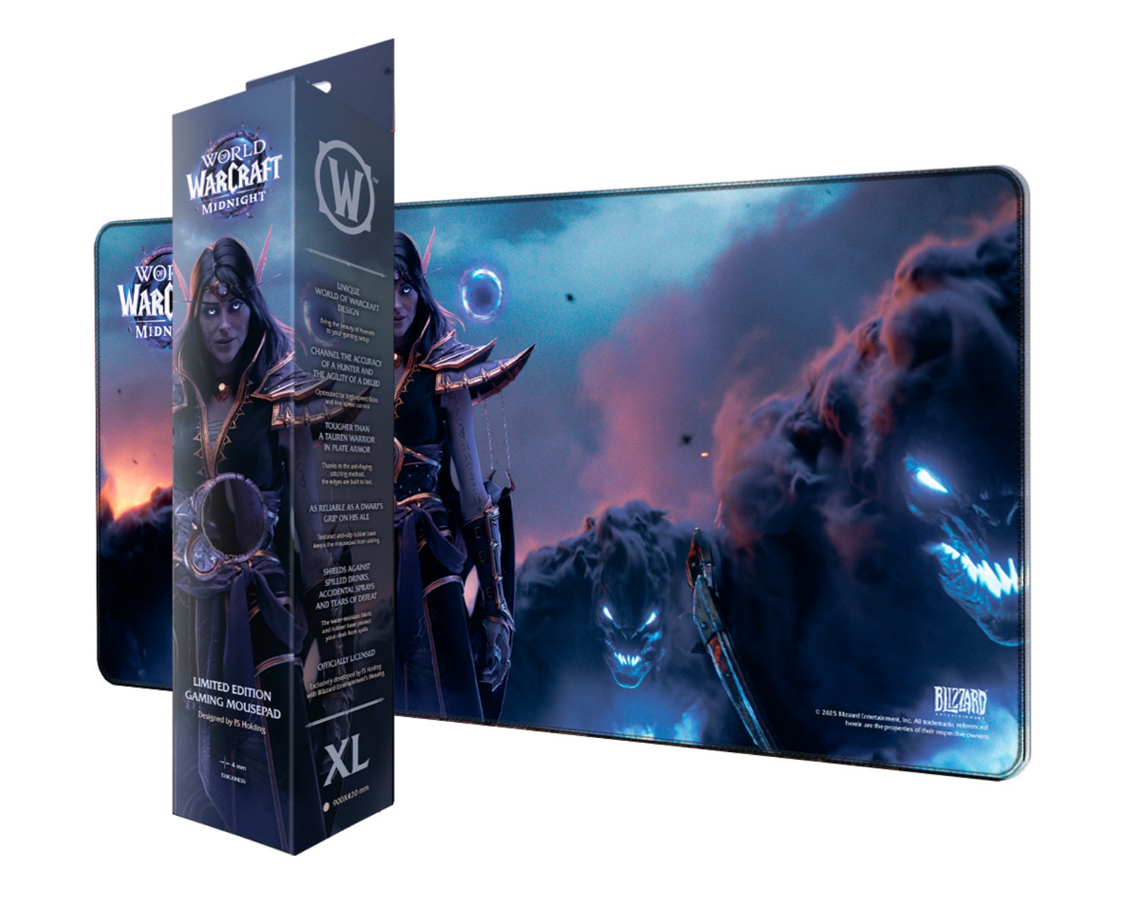 World Of Warcraft: Midnight Xalatath, Hiirimatto - XL on hiirimatto, joka on tarkoitettu pelaajille, jotka etsivät tyylin ja toiminnallisuuden yhdistelmää. Suuren ja tilavan pinnan ansiosta se tarjoaa tarpeeksi tilaa nopeille hiiriliikkeille ja monimutkaisille peliscenaarioille. Hiirimatto on suunniteltu tasaisella pinnalla mahdollistamaan korkea tarkkuus ja nopeus, mikä on ratkaisevan tärkeää peleissä, jotka vaativat nopeita refleksinä ja tarkkaa hallintaa.Virallisesti Blizzard Entertainmentin lisensoima, valmistettu korkealaatuisista materiaaleista ja autenttisilla taideteoksilla World of Warcraft: Midnight -pelistä.