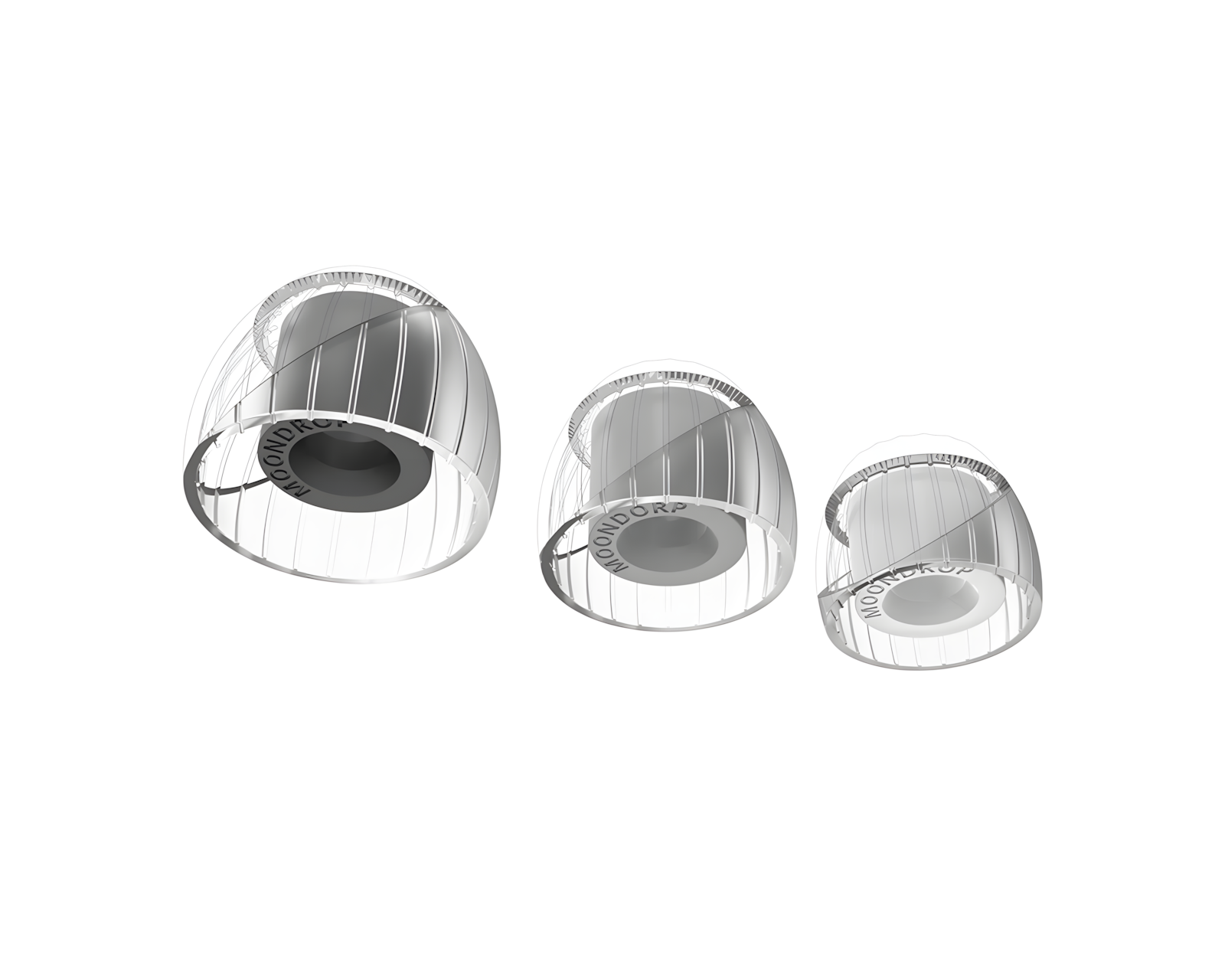 Moondrop Spring Tips ovat silikonista valmistettuja korvatulppia, jotka on suunniteltu IEM:ille (in-ear monitorit) Moondropilta. Nämä korvatulpat tarjoavat optimaalisen istuvuuden ja ovat saatavilla neljässä koossa, joiden halkaisija on yhteensopiva suuaukkojen välillä 4,8 mm ja 6,4 mm. Materiaali on lääkinnällistä silikonigeeliä, joka yhdistää pehmeyden ja joustavuuden mukavaan äänikokemukseen.Spring Tips käyttää akustista seinäopastinrakennetta, mikä on vahvistettu FEA:lla (finiittielementtimenetelmä). Tämä muotoilu minimoi ääniaaltojen resonanssin keskitaajuuksilla ja diskantilla, mikä johtaa tasaisempaan taajuusvasteeseen huipuissa. Radiaalinen kaksoistukirakenne varmistaa, että tulpat mukautuvat täydellisesti korvakanavaan, estäen niiden romahtamisen ja bassovuotoa muihin taajuuksiin. Tämä tarjoaa luonnollisemman äänentoiston miellyttävällä istuvuudella.