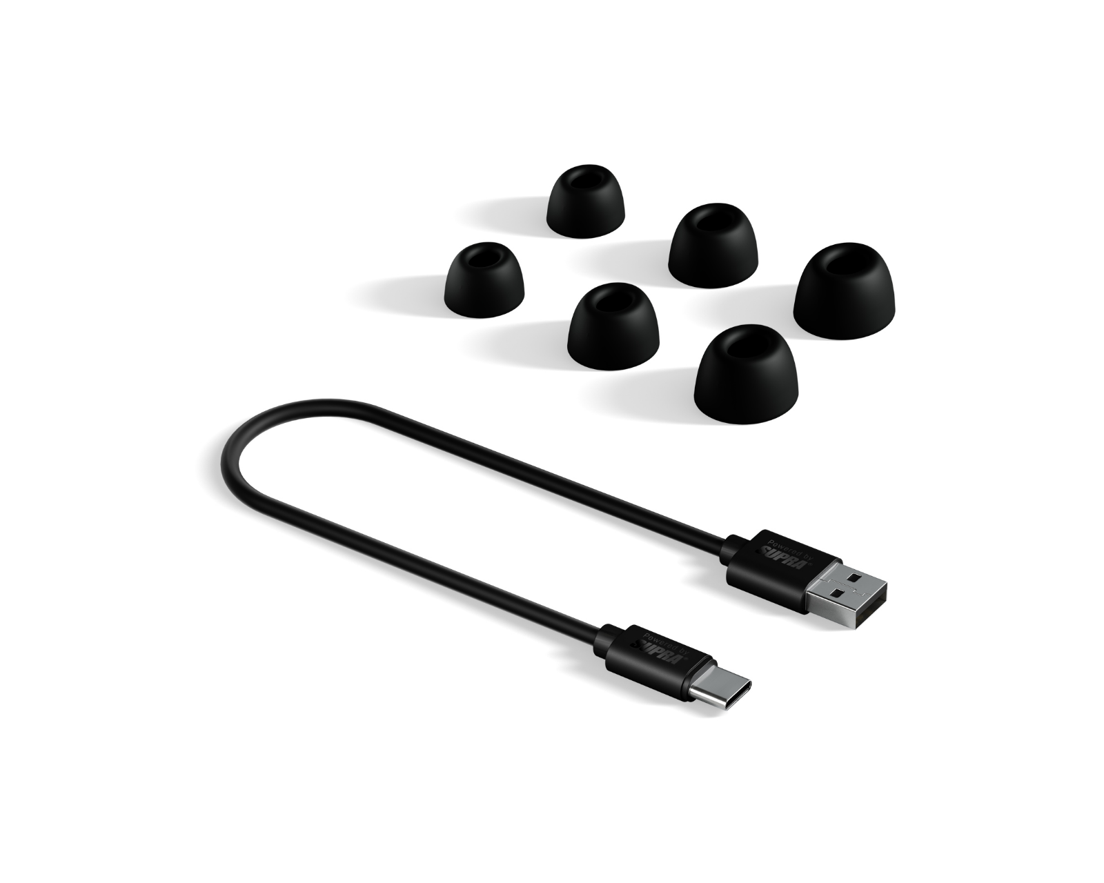 - Akkukesto: 100 tuntia latauskotelon kanssa