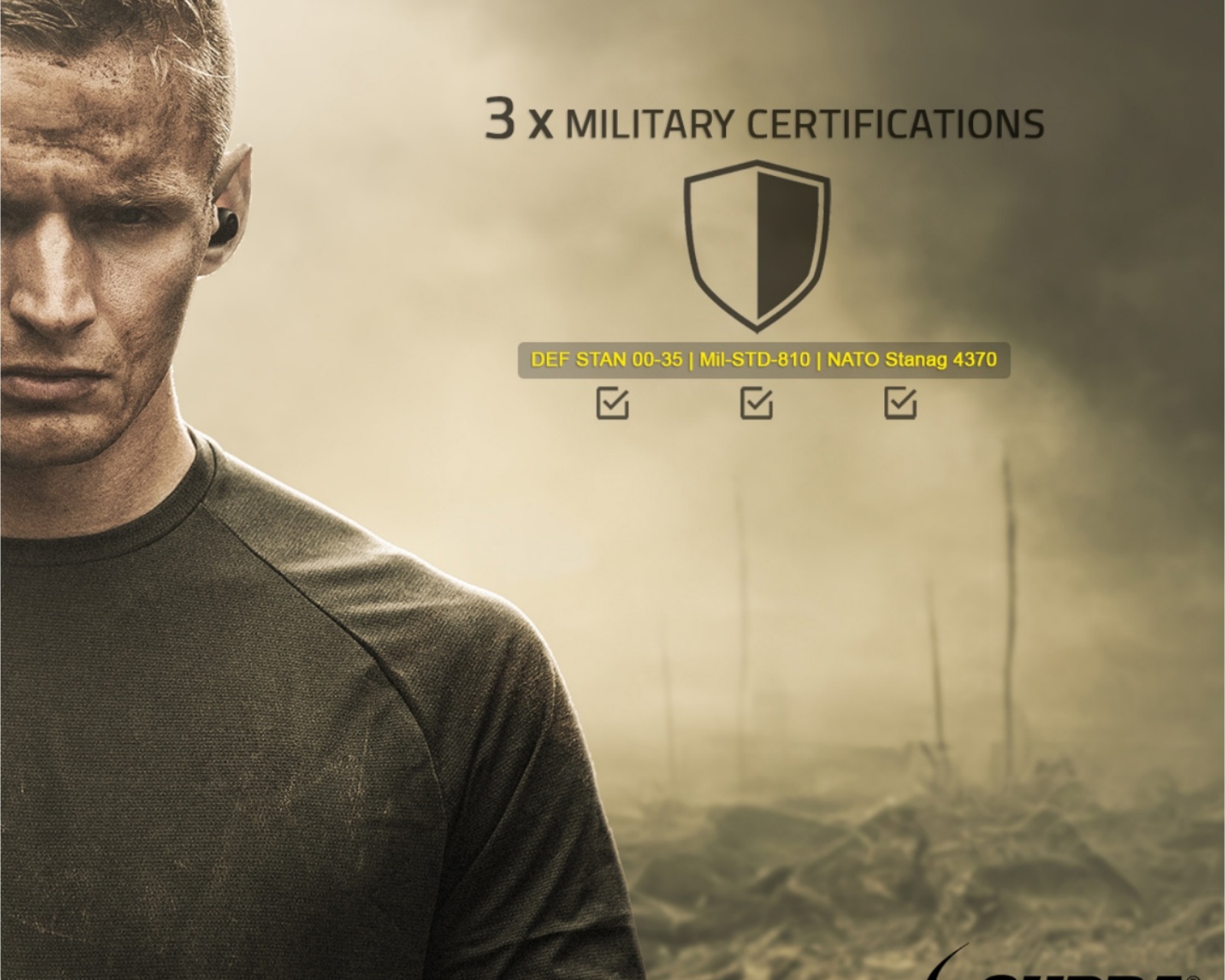 - Kolmoissertifioitu sotilasstandardin (Mil-STD, NATO, DEF-STAN) mukaan