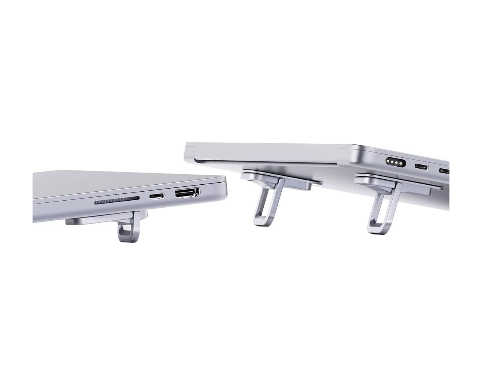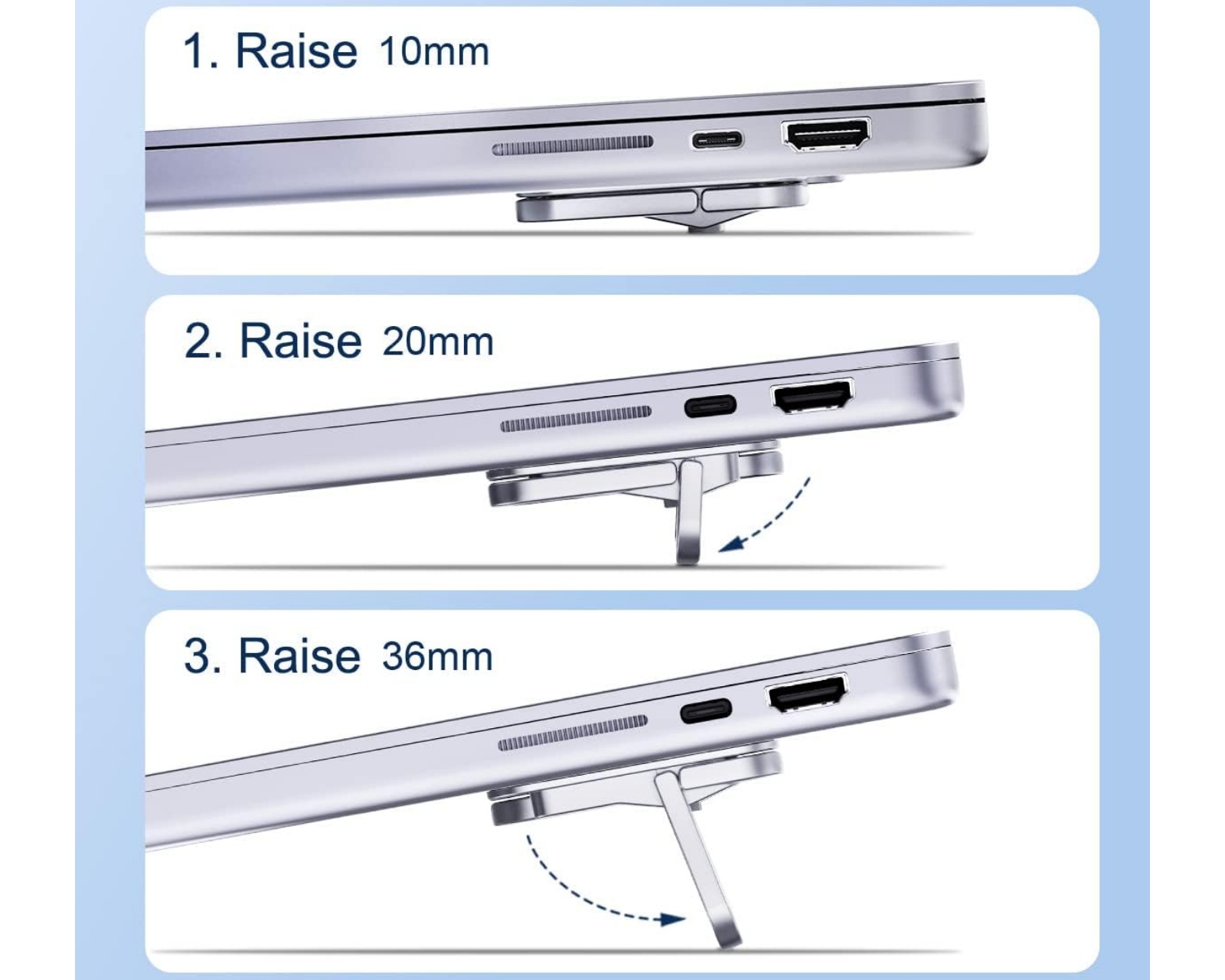 Hagibis kannettavan tietokoneen tuki on säädettävä laite, joka mahdollistaa ergonomisen käytön kannettaville tietokoneille. Tuki on valmistettu alumiiniseoksesta, joka myös toimii lämmönjohtajana parantaen tietokoneen jäähdytystä. Se tarjoaa kolme erilaista korkeutta säädettäväksi, mikä tekee siitä monipuolisen eri käyttötapoihin. Tuki sopii käytettäväksi 12-17 tuuman kannettavien tietokoneiden kanssa, mikä tekee siitä ihanteellisen sekä opiskelijoille että ammattilaisille.Hagibis kannettavan tietokoneen tuen materiaali on pintakäsitelty, jotta se tarjoaa vakaan ja kestävän rakenteen. Siinä on suunnittelu, joka lisää ilmanvirtausta ja estää ylikuumenemista nostamalla tietokonetta pinnasta, jolle se asetetaan. Korkeus voidaan säätää kolmessa vaiheessa: 10mm, 20mm ja 36mm, mikä mahdollistaa mukautetun työasennon. Itse pinnan suurentaminen auttaa myös lisäämään vakautta, mikä vähentää riskiä kannettavan tietokoneen kaatumiselle. Tuki on yhteensopiva sekä MacBook-mallien että muiden kannettavien tietokoneiden ja tablettien kanssa.