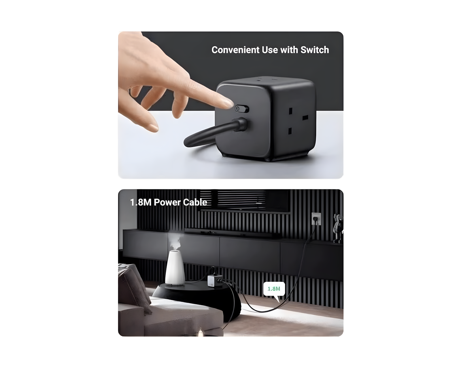 Jos etsit tyylikästä ja tehokasta USB-pistorasiaa, tämä tuote on pelastuksesi. Päästä eroon useiden erilaisten pistorasioiden ja USB-keskittimien sotkuista tällä käytännöllisellä laturilla. Pistorasiaan menevä kaapeli on 1,8 m pitkä, joten sinun ei tarvitse istua aivan pistorasian vieressä. Osta UGREEN DigiNest Cube USB-pistorasia ja lataa laitteesi nopeasti ja kätevästi.