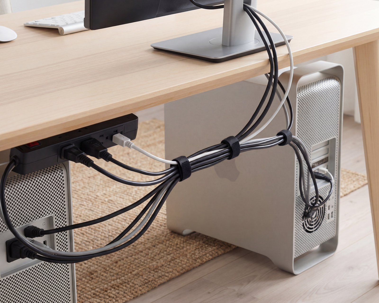 Kabelin hallintapakkaus MaxMountilta, joka pyrkii järjestämään kaapeleita tehokkaasti. Tämä pakkaus tarjoaa käytännöllisen ratkaisun kaapeleiden niputtamiseen ja ohjaamiseen, mikä tekee siitä sopivan sekä pelaajille että toimistokäyttäjille. Esirei'itetyt urat mahdollistavat nopean ja helpon asennuksen, jotta käyttäjä voi keskittyä työhönsä tai pelaamiseensa häiriöittä.Laite on valmistettu kestävästä materiaalista, joka varmistaa pitkäaikaisen käytön, jopa suurilla kuormilla. Joustava muotoilu sisältää mukana tulevat kaapelipidikkeet ja kaapelinauhat, jotka kiinnittävät kaapelit helposti seiniin tai huonekaluihin. Työtilan koosta riippumatta pakkaus tarjoaa kaikki tarvittavat komponentit kaapelien järjestämiseen. Järjestelmä minimoi kompastumisriskin ja vahingot, mikä on erityisen tärkeää ahtaissa ympäristöissä, joissa kaapelit voivat helposti muodostaa esteitä.