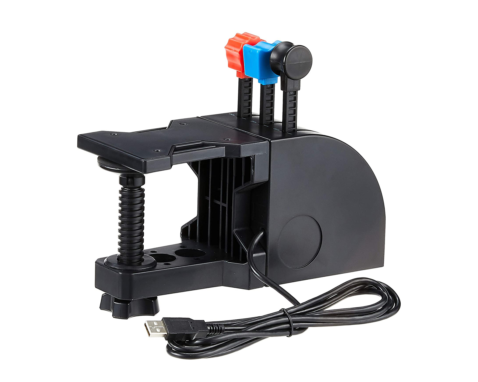 Käytä Logitech G Flight Yoke Systemin kanssa. Vaihdettavat sauvapäät auttavat sinua luomaan mukautetun kaasun, läpän, komennon ja potkurin nousun kokoonpanon. Irrota vipujen yläosat ja ryhmittele sitten säätimet täsmälleen haluamallasi tavalla.Logitech G Throttle Quadrant on varustettu muokattavissa olevilla kiinnityspidikkeillä, jotka antavat sinulle vapauden konfiguroida sarjasi sinulle sopivalla tavalla.