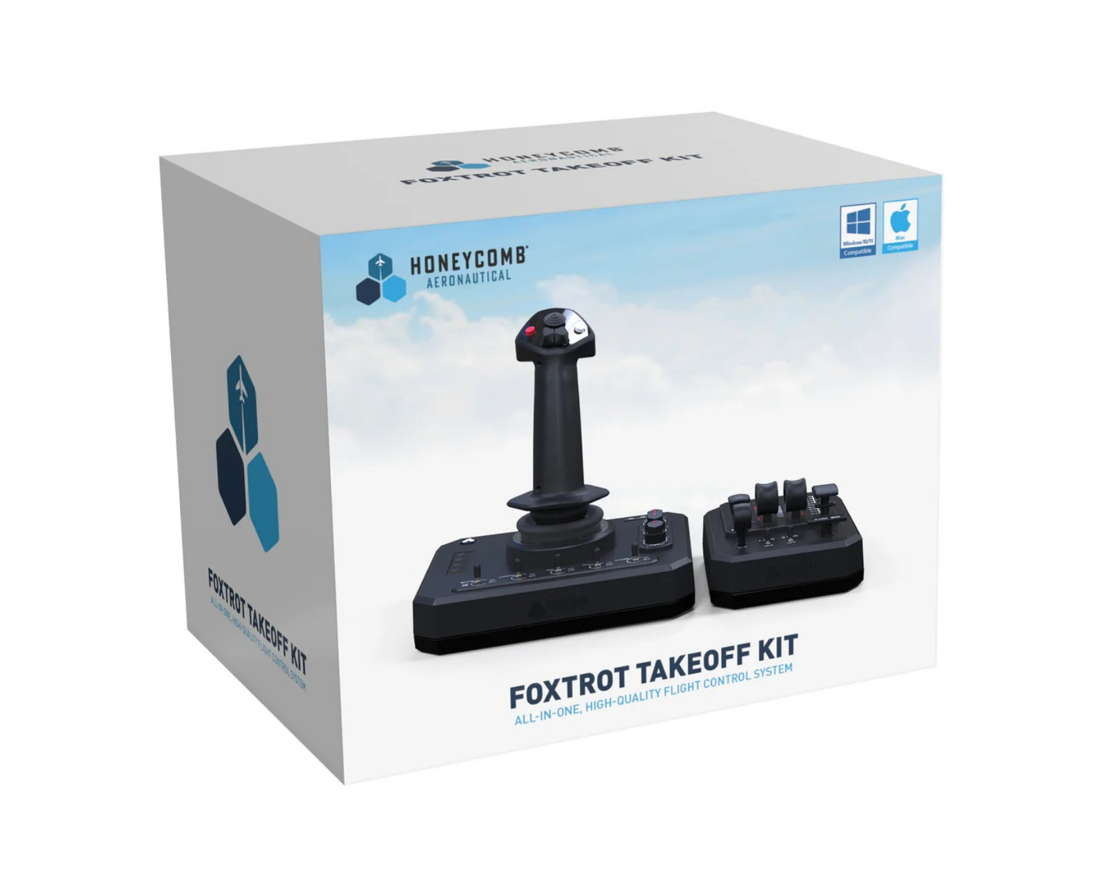 Foxtrot Takeoff Kit on Honeycombin flightstick, joka on suunniteltu simulaatioharrastajille, jotka suosivat tätä yoken sijasta. Se tarjoaa tarkkuutta, joka on ratkaisevan tärkeää hallinnassa suosituissa simulaattoripeleissä, kuten MSFS 2020, MSFS 2024 ja xPlane. Integroitu thrust control box, jossa on neljä ohjainta, varmistaa kattavan hallinnan lennosta.Laite on suunniteltu tarjoamaan realistinen lentokokemus ja se on yhteensopiva muiden Honeycomb-tuotteiden kanssa, mikä tekee siitä joustavan ja helposti integroitavan olemassa oleviin järjestelmiin. Herkkä elektroniikka ja liikkuvat osat on huolellisesti suunniteltu käyttäjän turvallisuus mielessä. Ohjelmistotuki tarjotaan ajureiden ja päivitysten kautta, jotka ovat saatavilla Honeycombin verkkosivustolla, varmistaen optimoidun käyttäjäkokemuksen.