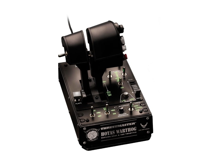 U.S. Air Force-licensed A-10C dual replica throttles* + built-in replica control panel, for use with PC flight simulation software and games. Works with all joysticks on the market and with all games supporting multi-USB and throttles.