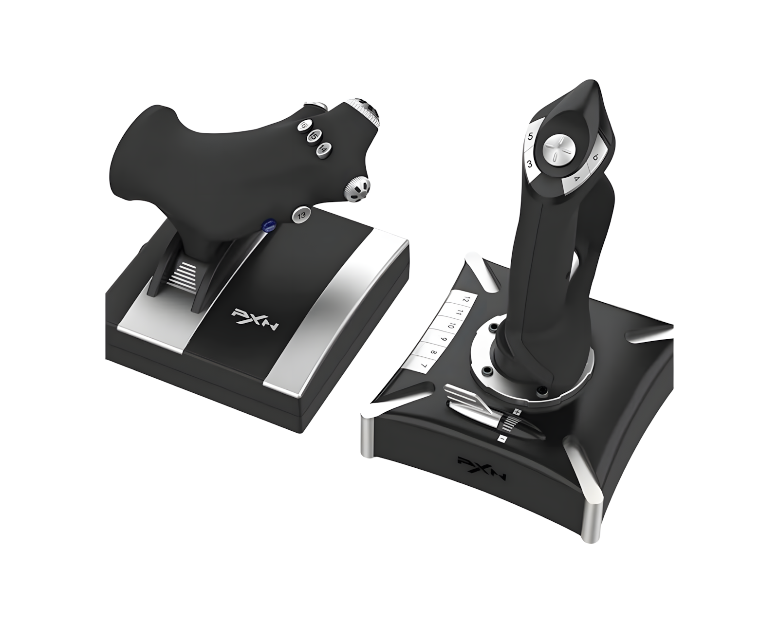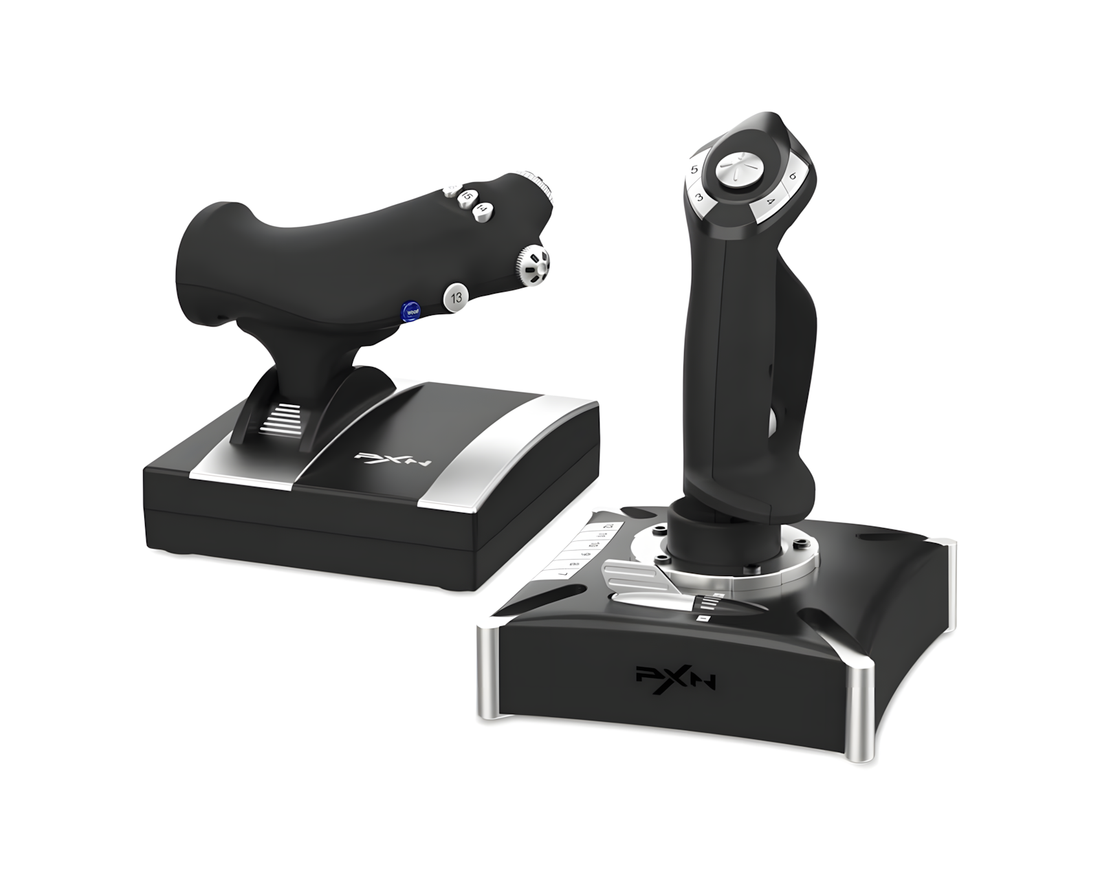 2119PRO Lentokontrolli Joystick on tuote PXN:ltä ja se tarjoaa simulaation todellisesta lentokokemuksesta. Se on yhteensopiva PC:n, PS4:n ja Xbox Onen kanssa ja siinä on ergonominen muotoilu, joka lisää käyttömukavuutta. Joystickissä on 7 akseleita, 2*8 suuntaista POV:ta ja 16 toimintopainiketta, joita voidaan laajentaa 16*3 painikkeeseen ohjaimen kautta. Tuote on suunnattu pelaajille, jotka etsivät realistista lentokontrollia.Joystick ja kaasuvivun laite on suunniteltu erikseen, mikä tarkoittaa, että joystickia voidaan käyttää itsenäisesti. Joystickissä on 4 akseleita, 8 suuntaista POV:ta ja 12 toimintopainiketta. Laite on varustettu sisäänrakennetulla värinämotorilla, joka simuloi lentokonesuhinoita ilmassa ja muissa ympäristöissä. Ohjaimen kautta käyttäjät voivat kartoittaa painikkeita ja tukea näppäinasetuksia PC:llä. Joystickin kaapeli on 2 metriä pitkä, kun taas kaasuvivun kaapeli on 1,6 metriä.