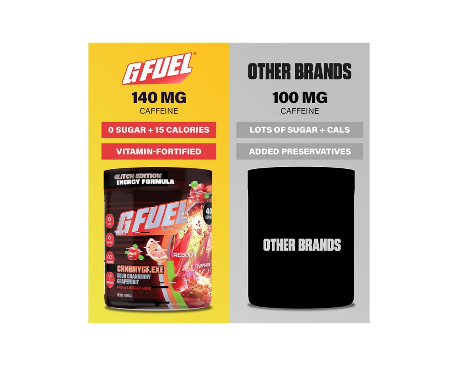 G FUEL Energy Drink on äärimmäinen lisäravinne pelaajille, luovan työn tekijöille, opiskelijoille ja urheilijoille. Huolellisesti laaditun, sokerittoman reseptinsä ja ensiluokkaisten ainesosiensa ansiosta G FUEL antaa sinulle täydellisen yhdistelmän energiaa, keskittymiskykyä ja kestävyyttä, jotta voit tarttua kaikkiin haasteisiin, joita kohtaat päivän aikana.