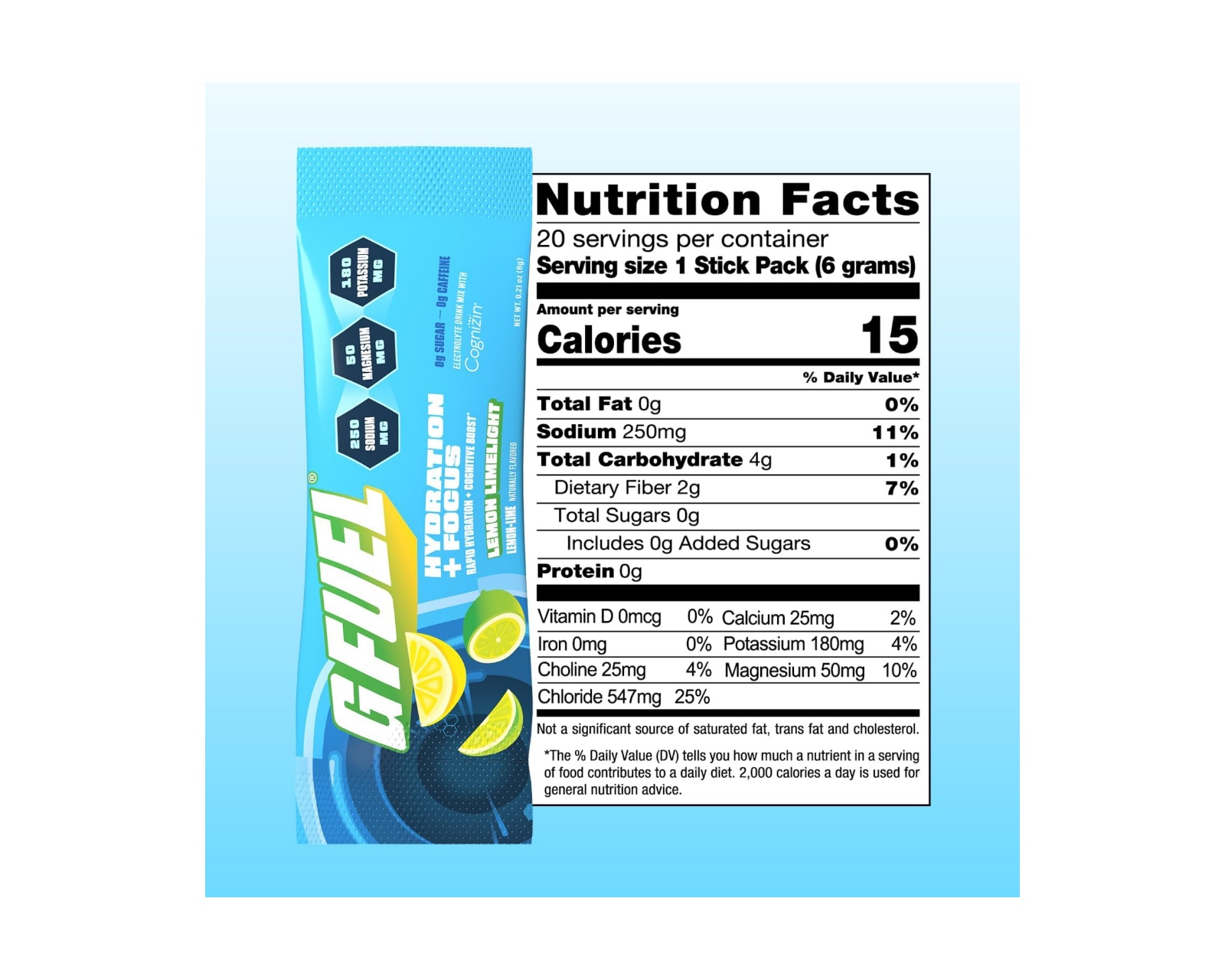 G Fuel Elektrolyyttijauhe on G Fuelin elektrolyyttijauhe, joka auttaa välittömässä nesteytyksessä ja keskittymisessä. Tuote sisältää huolellisesti suunnitellun sekoituksen viittä tärkeää elektrolyyttiä, mikä optimoi kehon nestetasapainon ja tukee henkistä selkeyttä. Jokainen annos tarjoaa 250 mg natriumia, 50 mg magnesiumia ja 180 mg kaliumia sekä on täysin sokeriton vain 15 kalorin verran.Se sopii pelaajille ja aktiivisille yksilöille, jotka etsivät tehokasta nesteytystä. Jauhe on kehitetty antamaan nopeaa nesteytystä ilman suolaista jälkimakua maukkaaseen sitruuna-lime-makuun kiitos. Elektrolyyttien ja nootropisten ainesosien, kuten Cognizinin, sekoitus edistää sekä muistia että keskittymistä. Alhaisen kalorimäärän ja sokeritason ansiosta tämä on ihanteellinen ratkaisu niille, jotka haluavat pysyä nesteytettyinä ilman turhia lisäaineita.